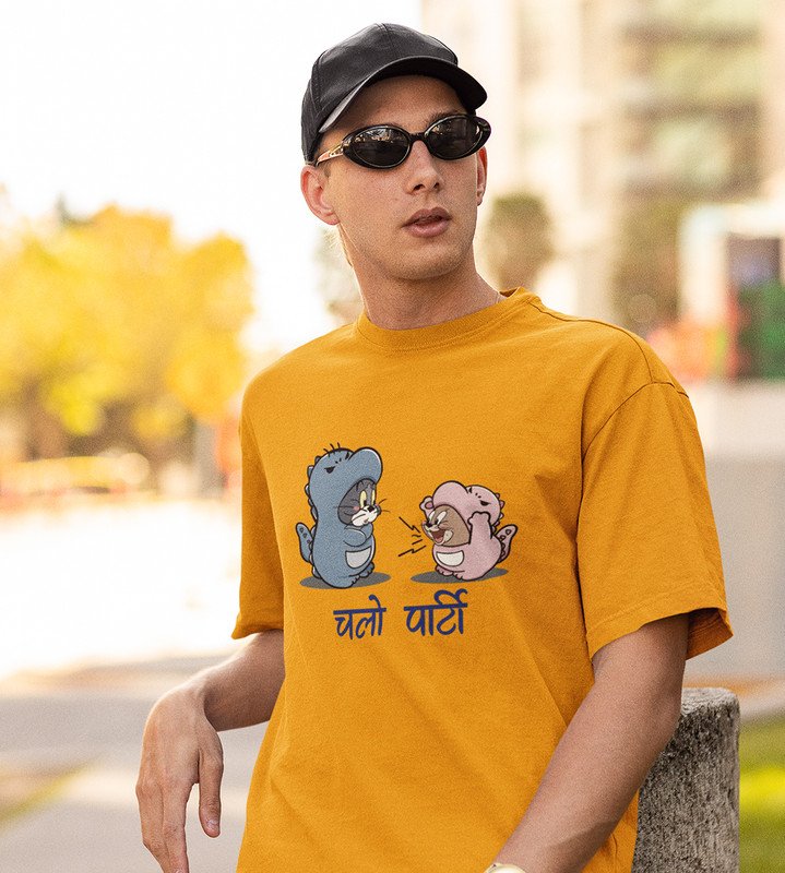 Let's Party Yellow Graphic Printed T-shirt For Mens Boys