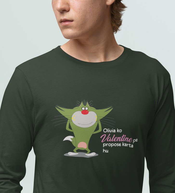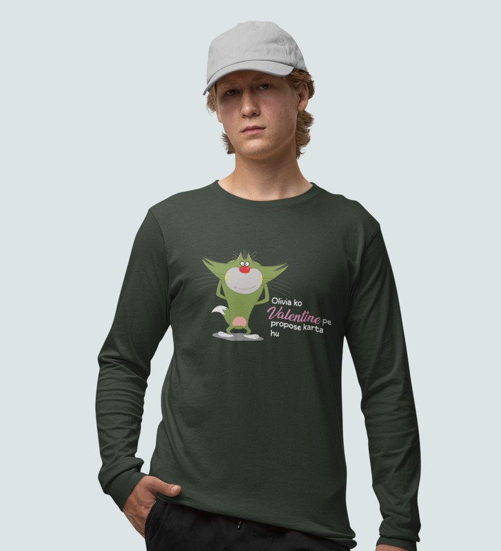 Lets Propose Her: (green) Full Sleeve T-Shirt For Singles