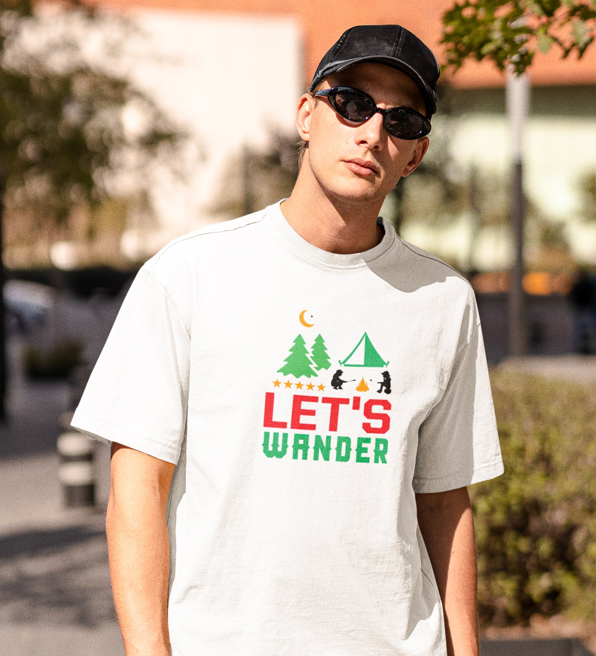 JD.TRENDS Let's Wander White Round Neck Cotton Half Sleeved Men's T-Shirt with Printed Graphics
