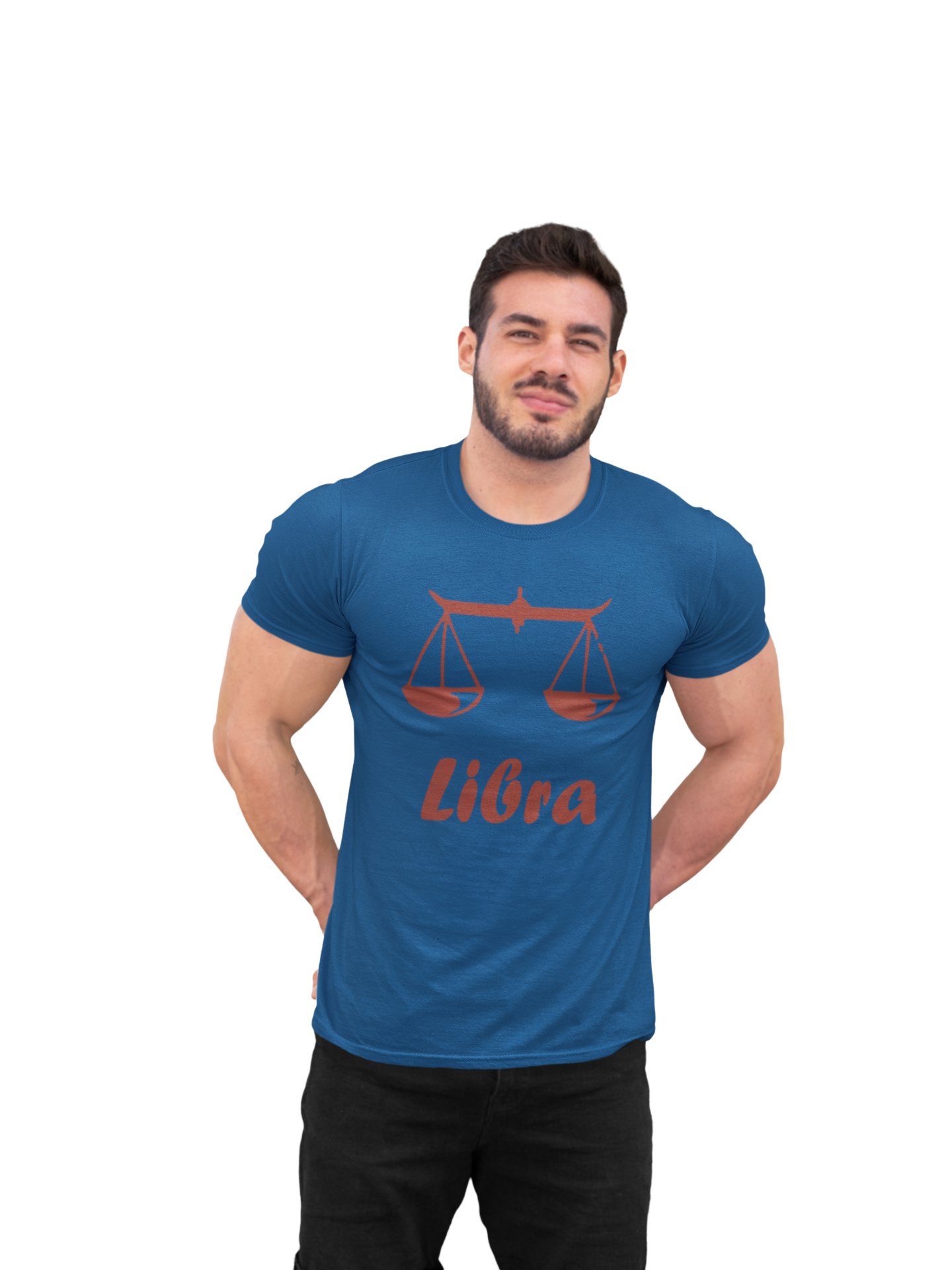 Libra (BG Brown)(Blue T) - Printed Zodiac Sign Tshirts - Made especially for astrology lovers people