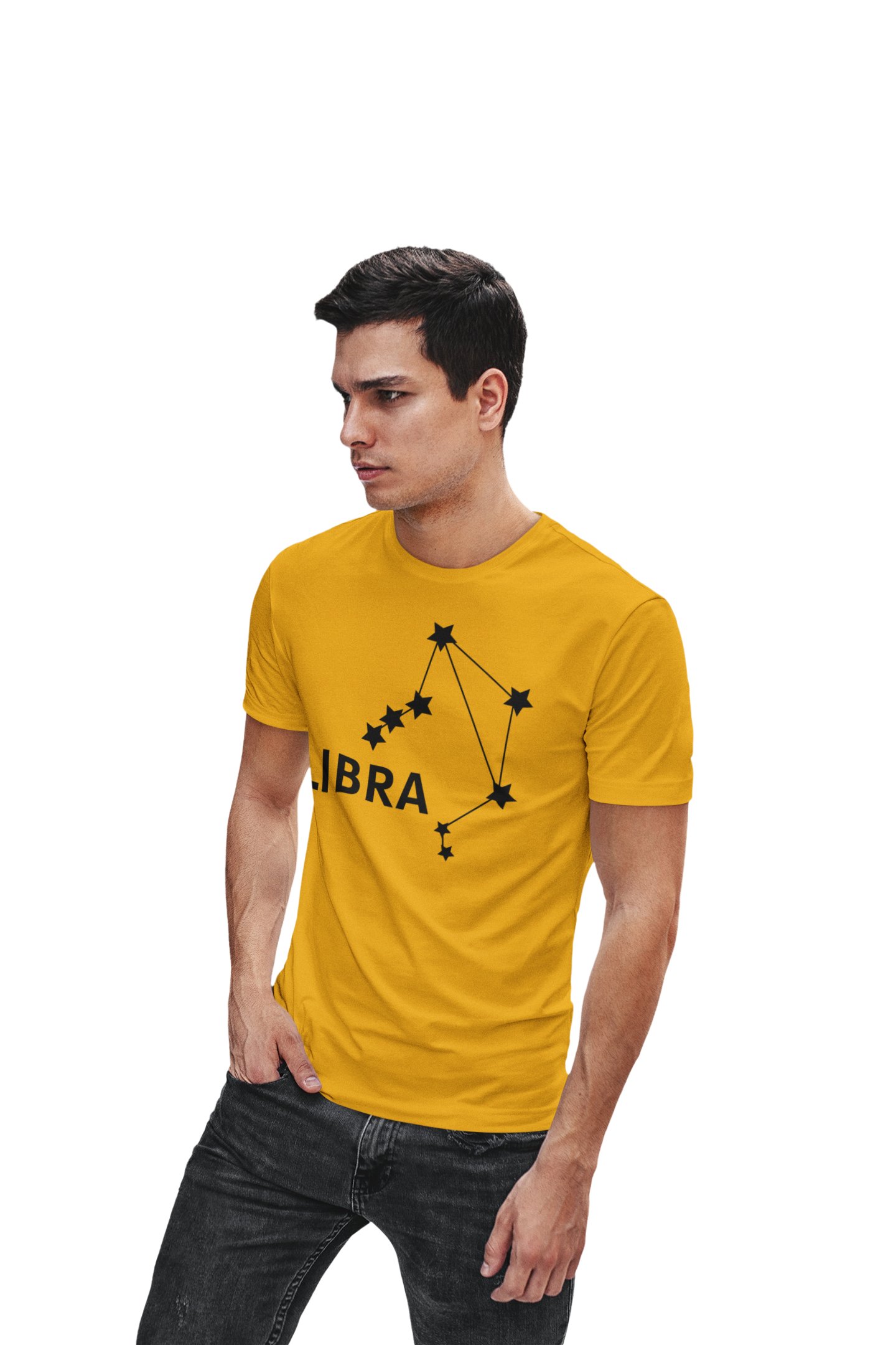 Libra stars (BG Black) (Yellow T) - Printed Zodiac Sign Tshirts - Made especially for astrology lovers people