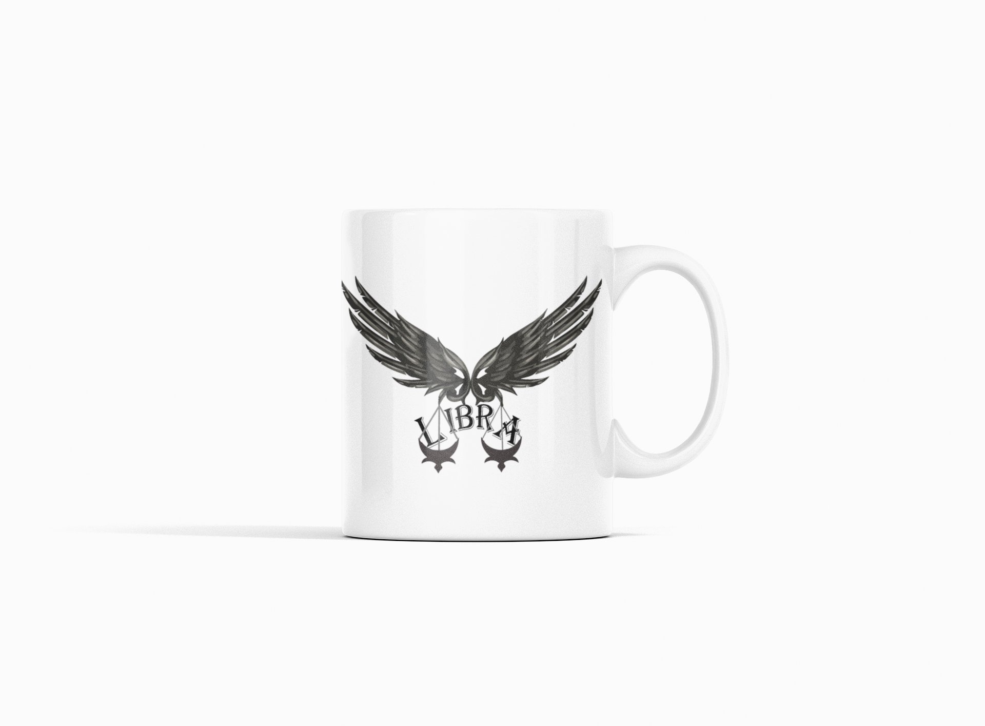 Libra symbol (Text above)- zodiac themed printed ceramic white coffee and tea mugs/ cups for astrology lovers