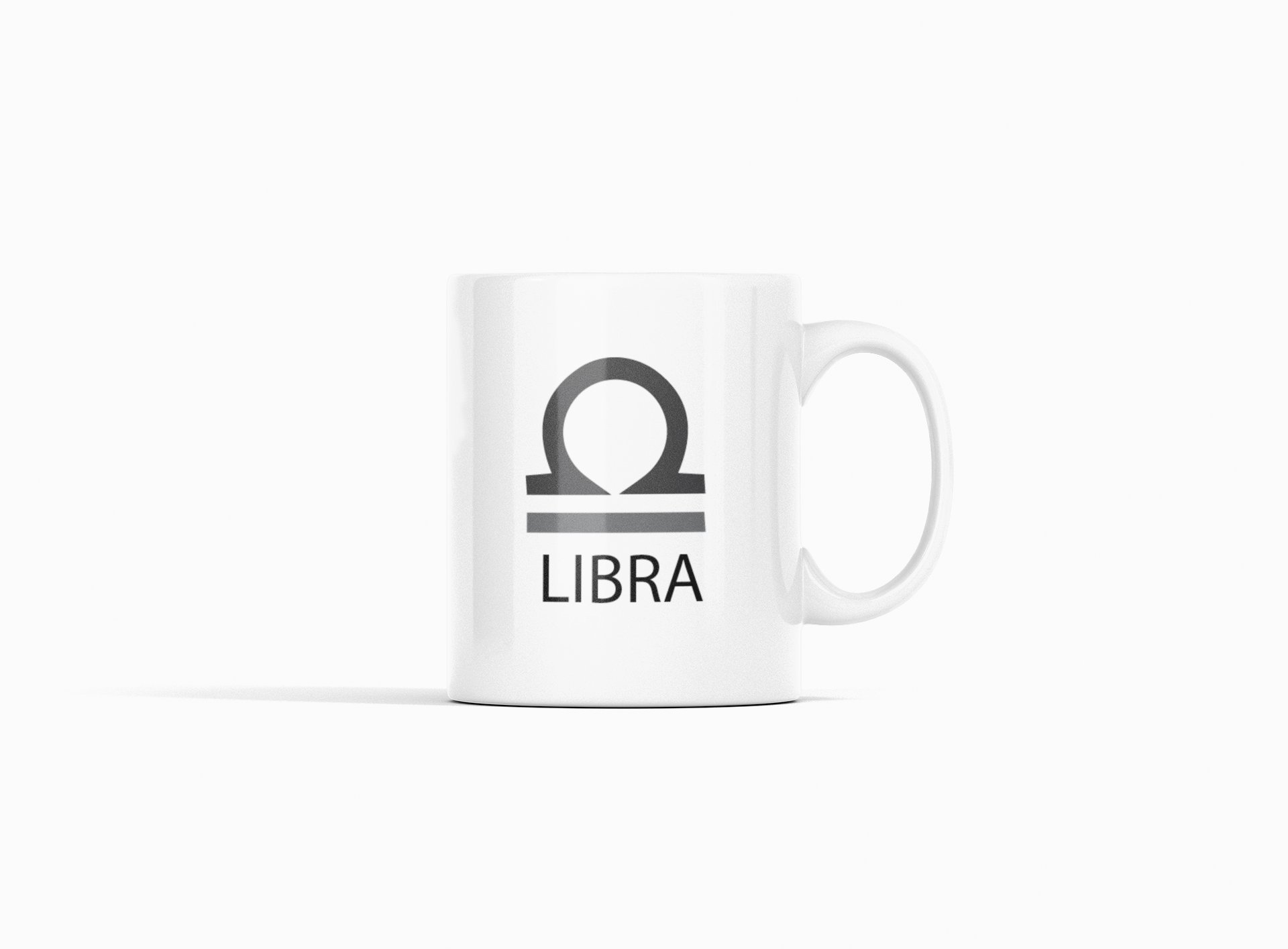 Libra - zodiac themed printed ceramic white coffee and tea mugs/ cups for astrology lovers