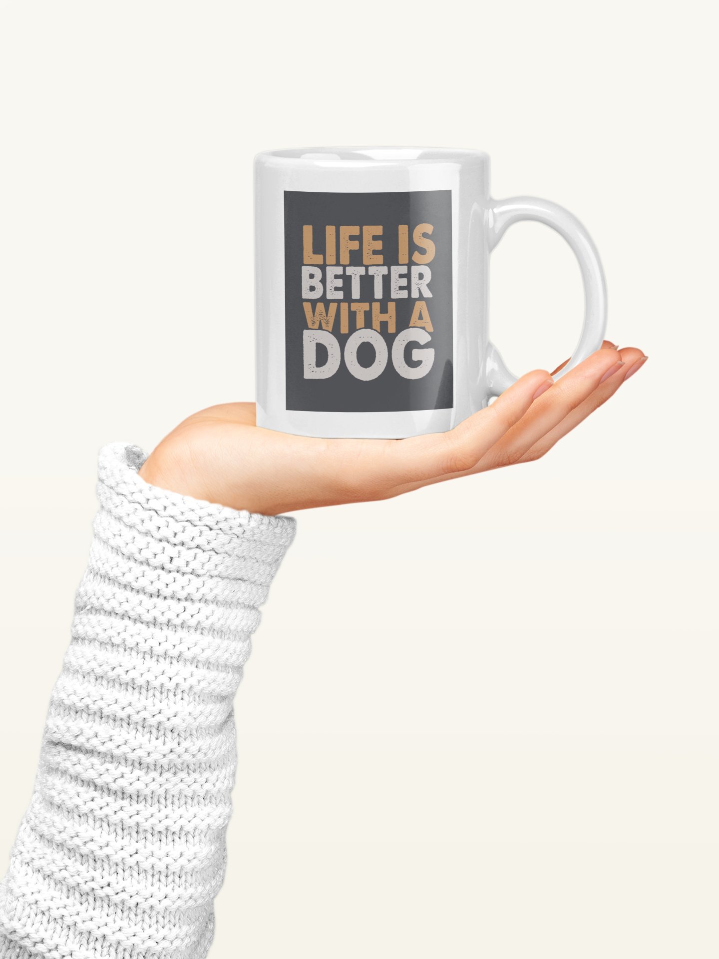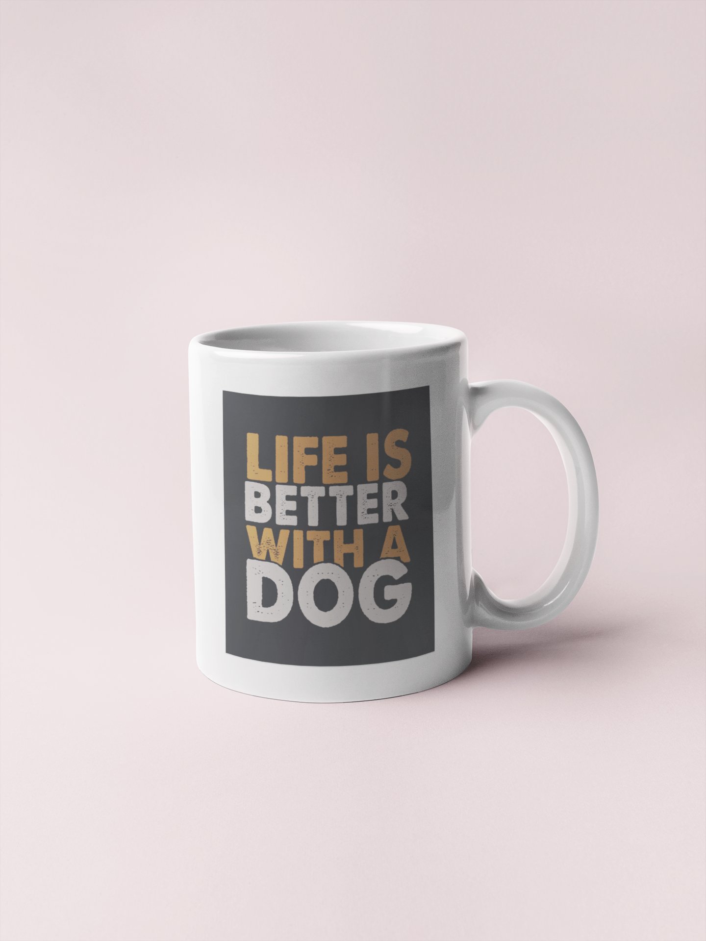 Life is better with a dog - pets themed printed ceramic white coffee and tea mugs/ cups for pets lover people