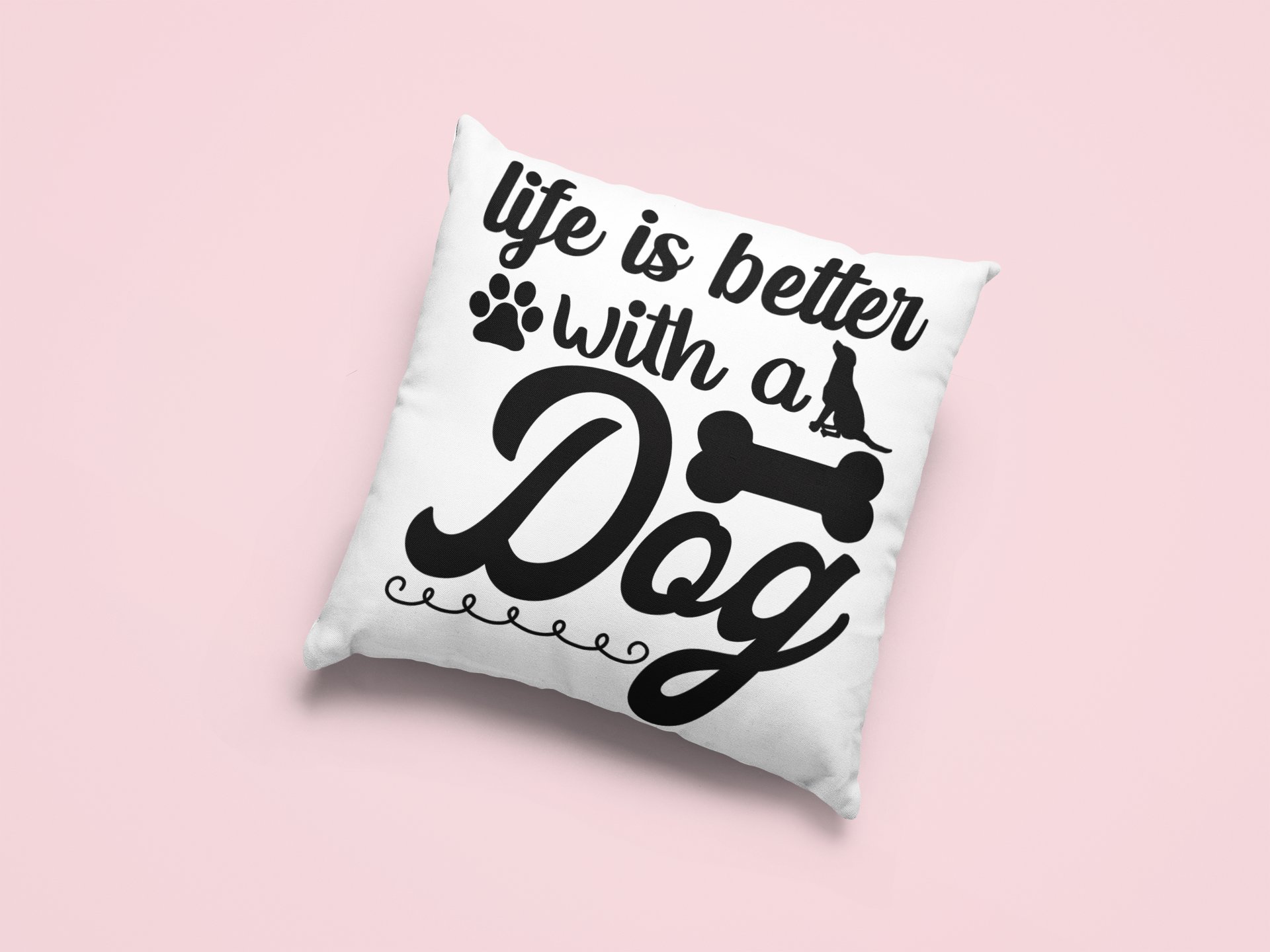 Life Is Better With Dogs text in black -Printed Pillow Covers For Pet Lovers(Pack Of Two)