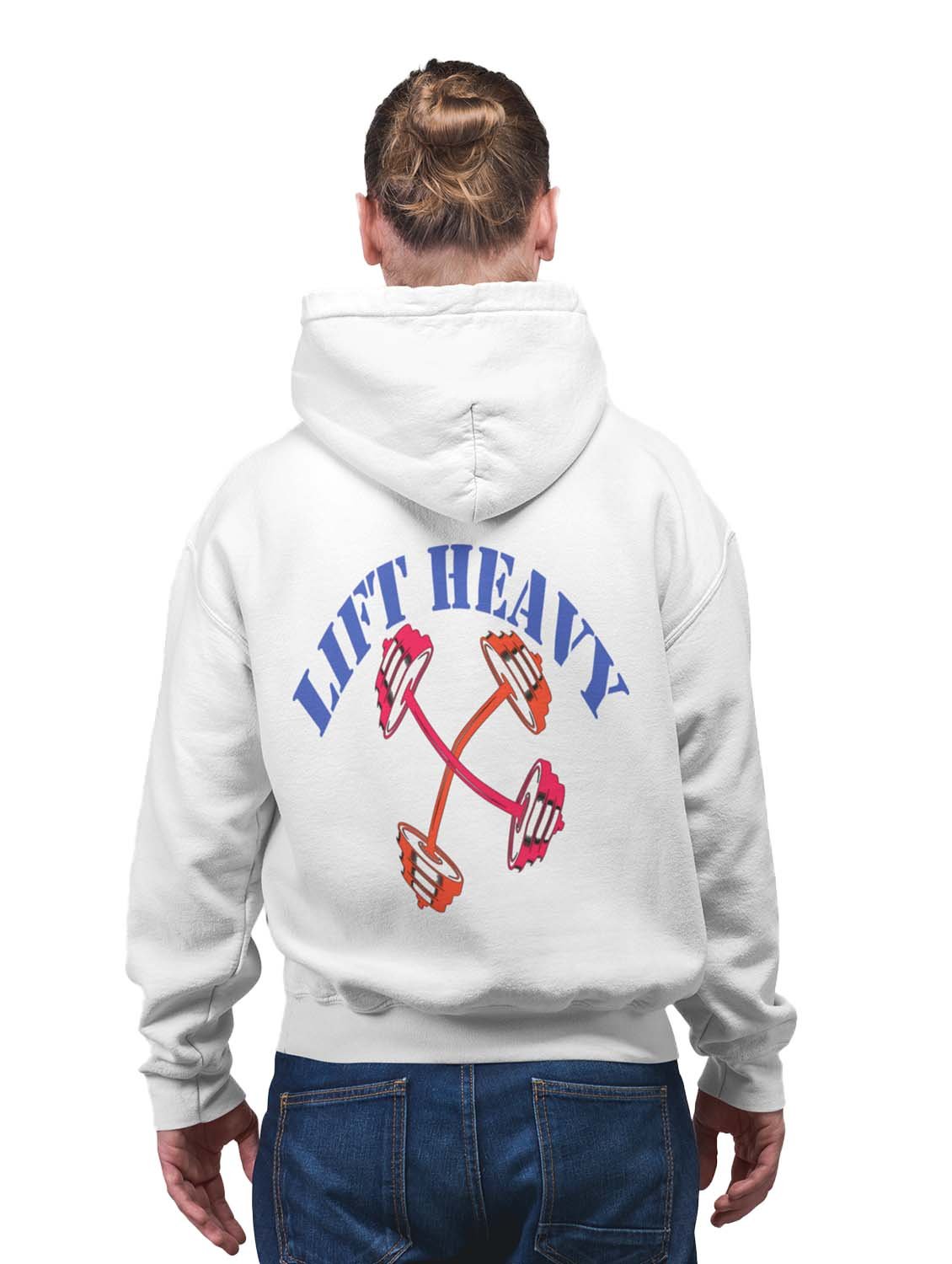 Lift Heavy Text printed artswear white hoodies for winter casual wear specially for Men
