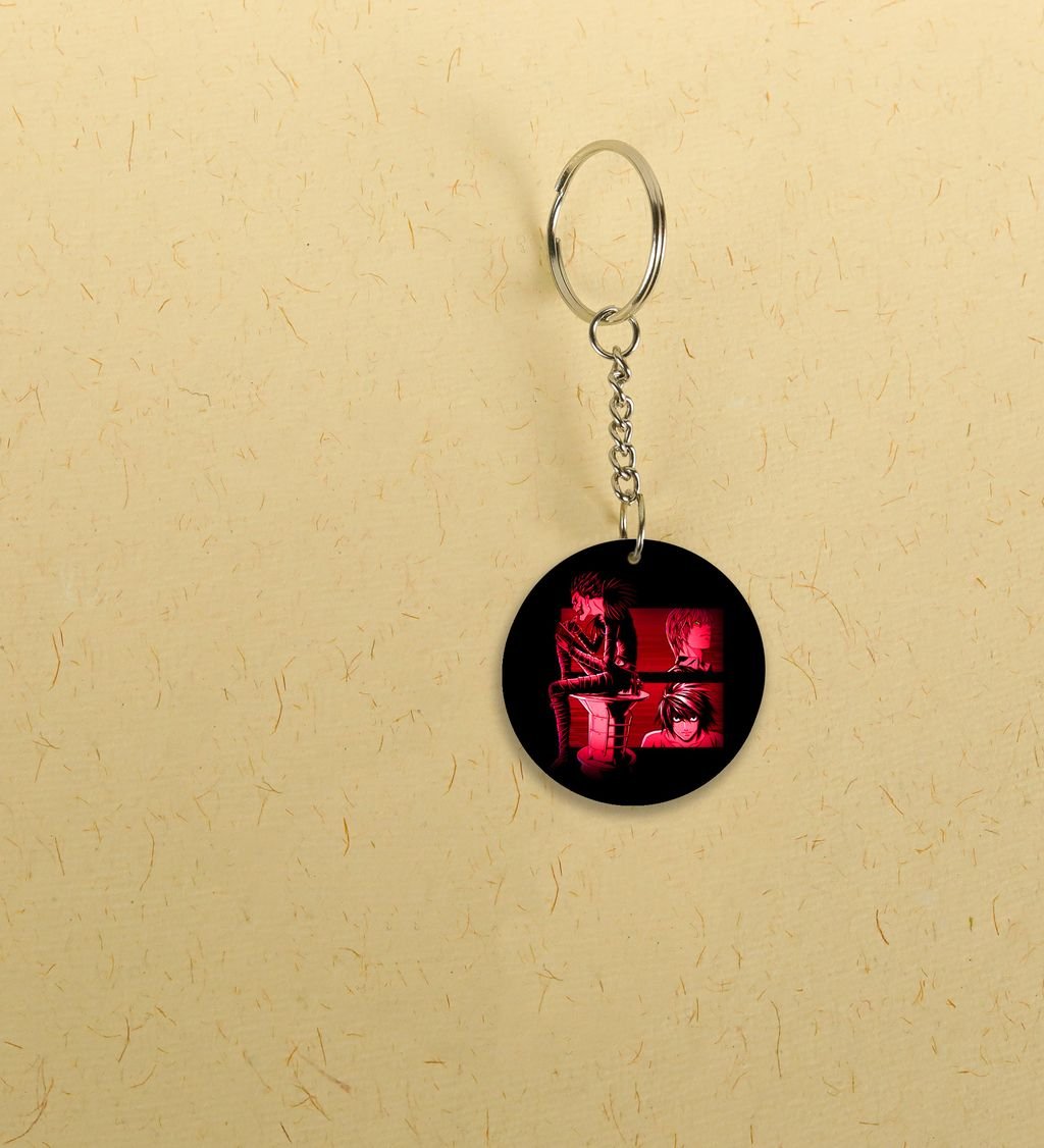 Light L and Ryuk Showdown Anime Printed Round Keychains Pack of 2