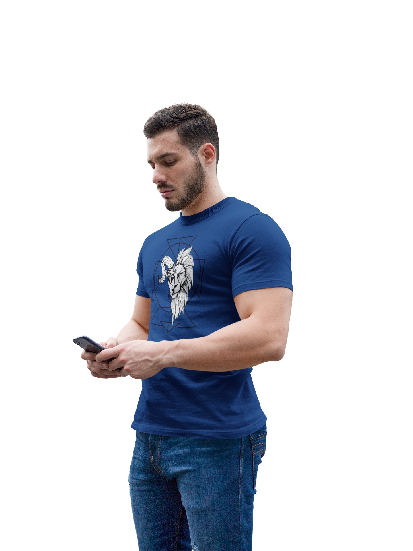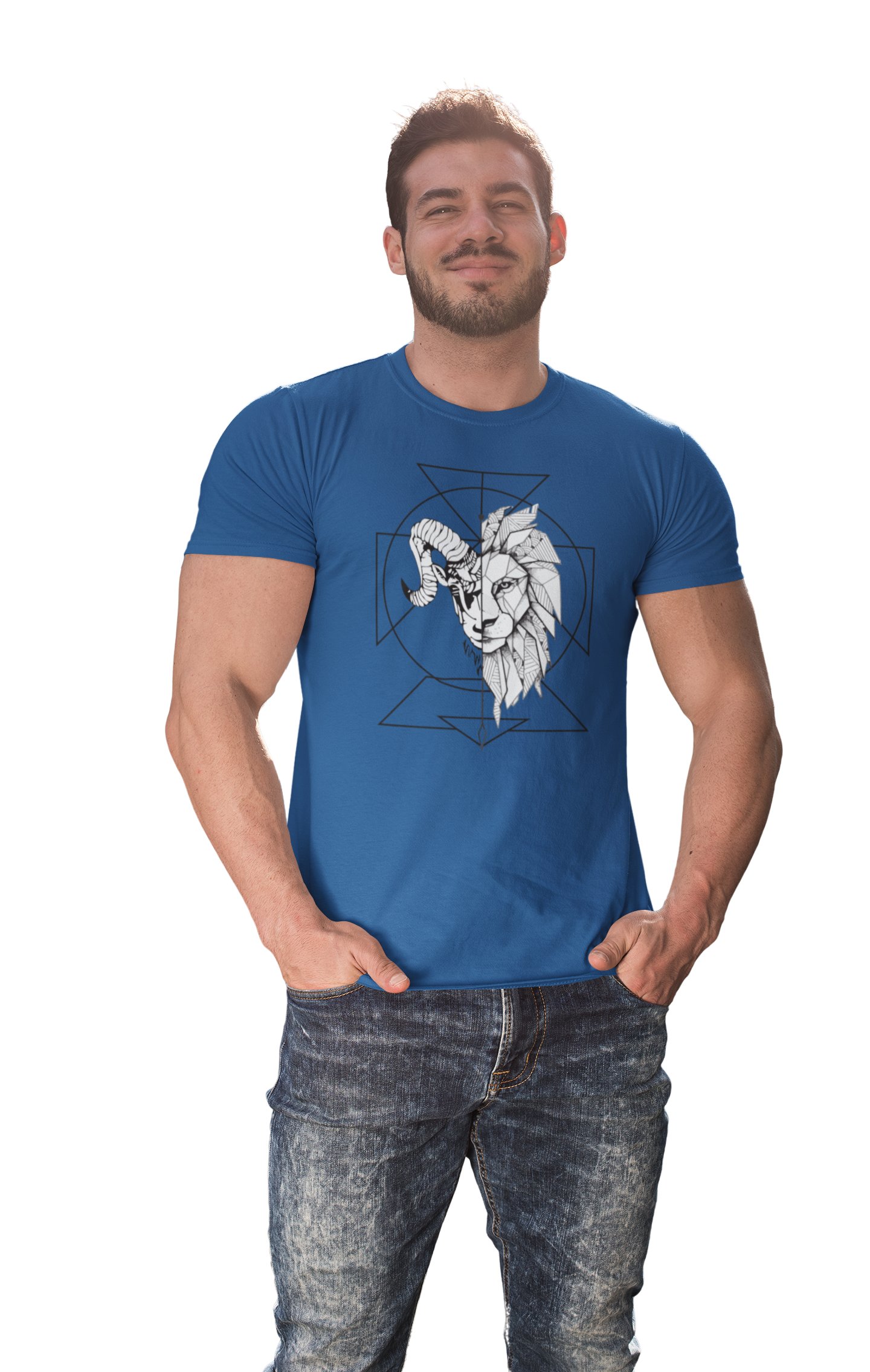 Lion and Ram(Blue T) - Printed Zodiac Sign Tshirts - Made especially for astrology lovers people