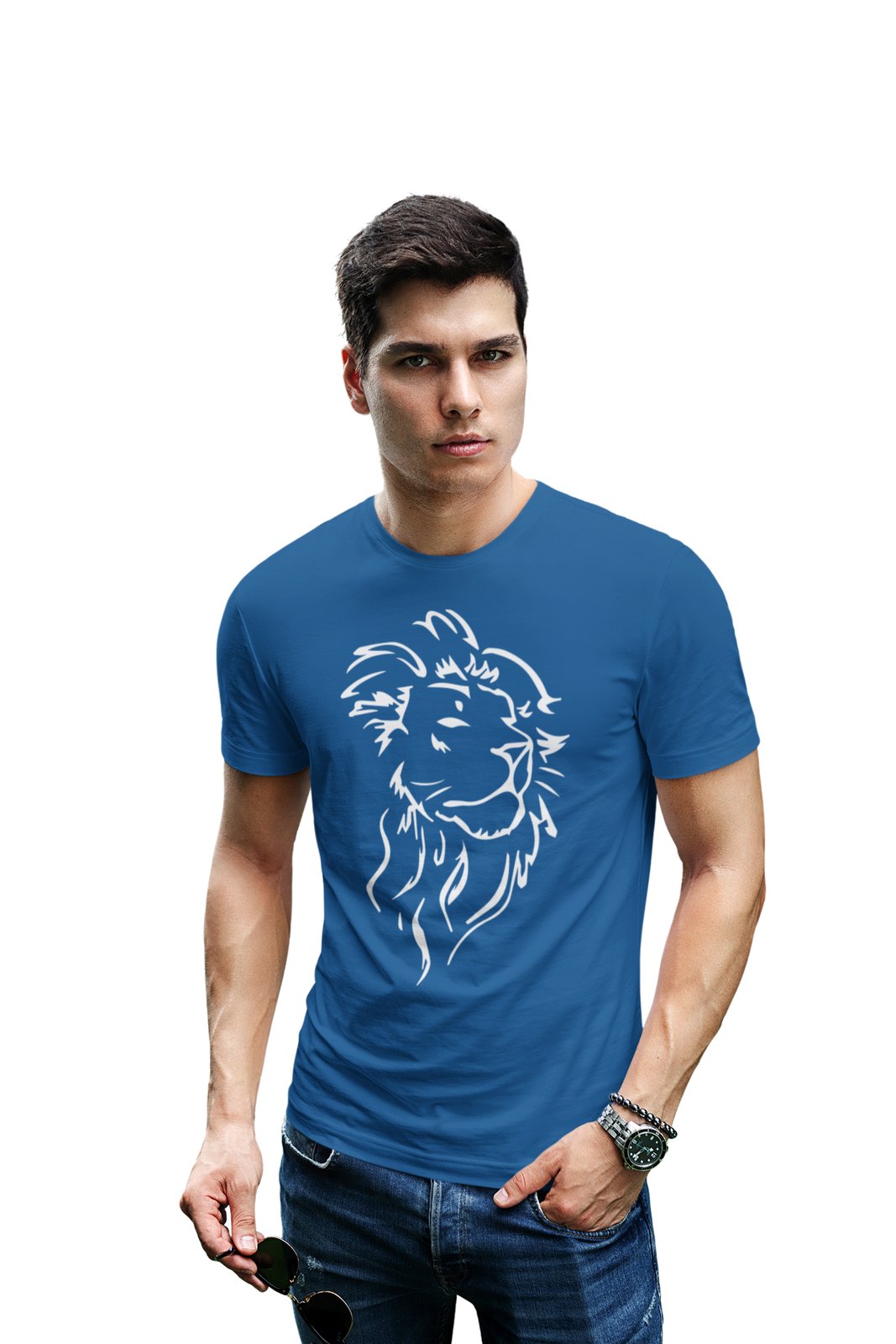 Lion face, (BG White) (Blue T) - Printed Zodiac Sign Tshirts - Made especially for astrology lovers people