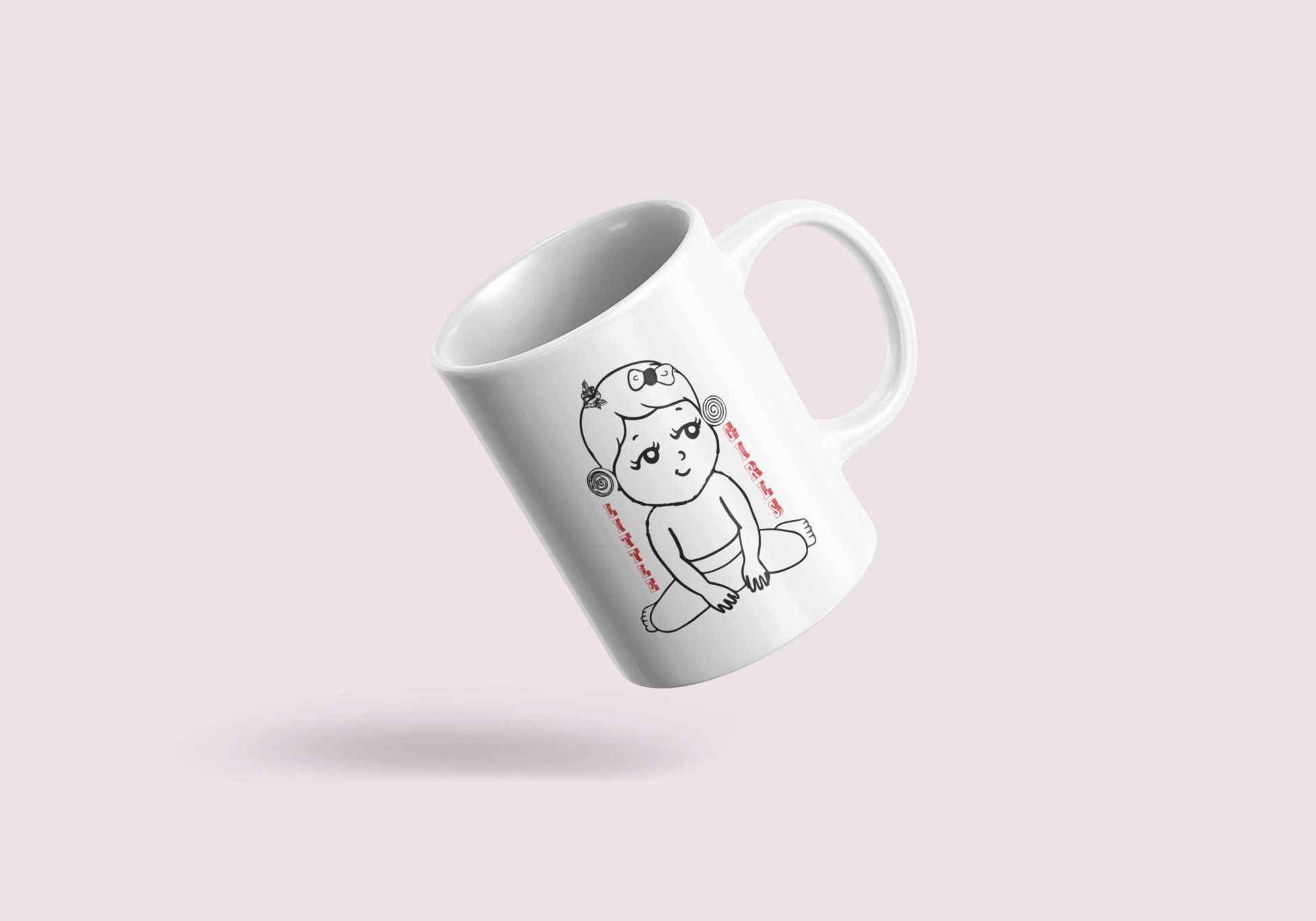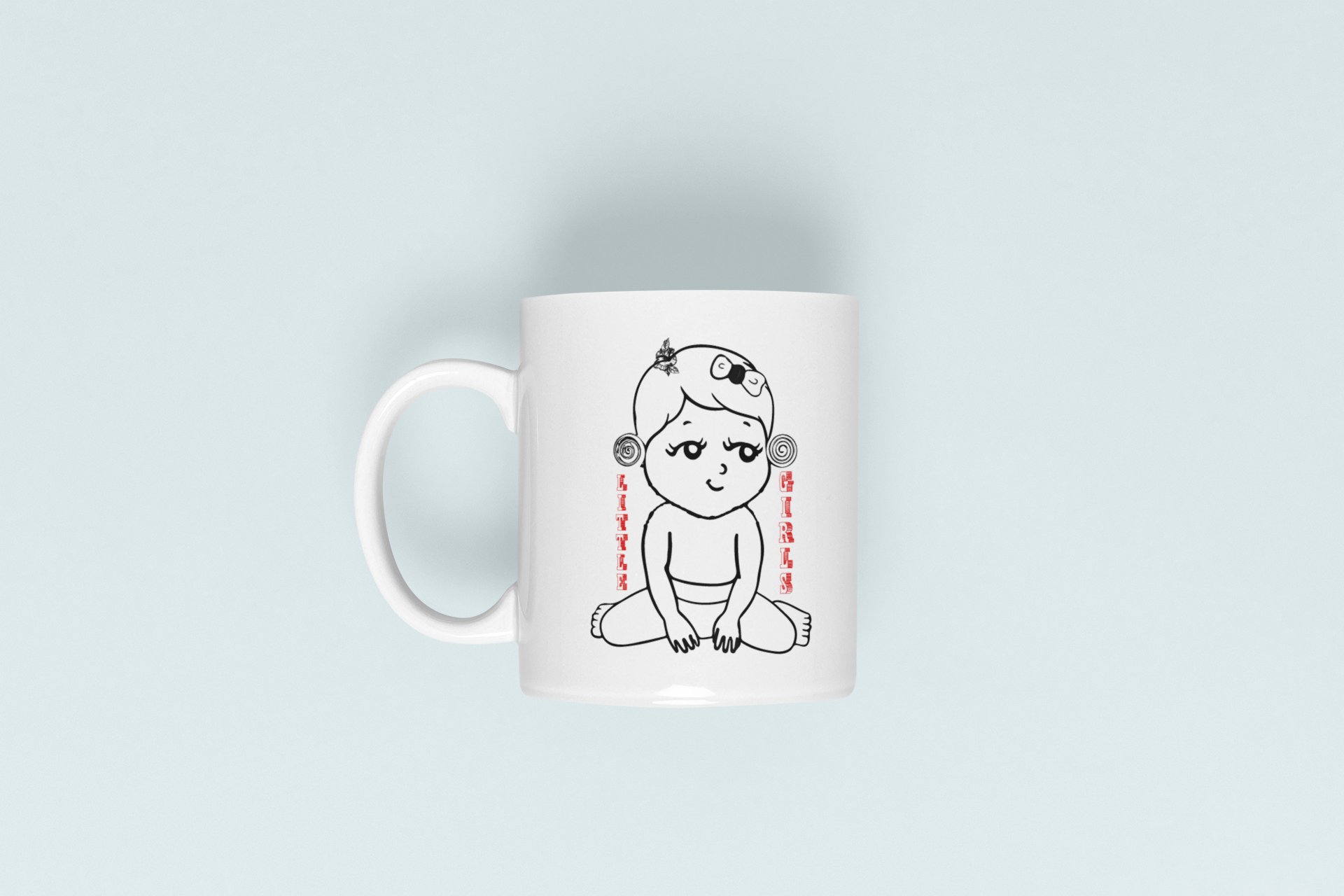 Little Girls- line art themed printed ceramic white coffee and tea mugs/ cups