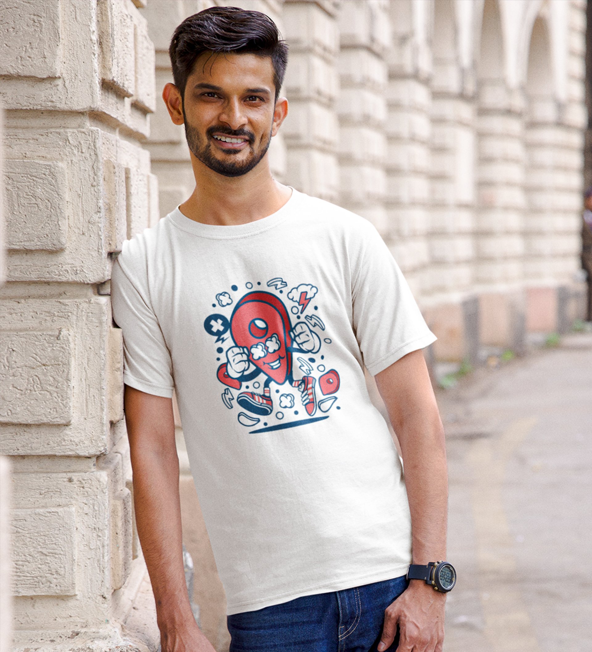 Location Pin Illustration Art White Round Neck Cotton Half Sleeved Men's T-Shirt with Printed Graphics