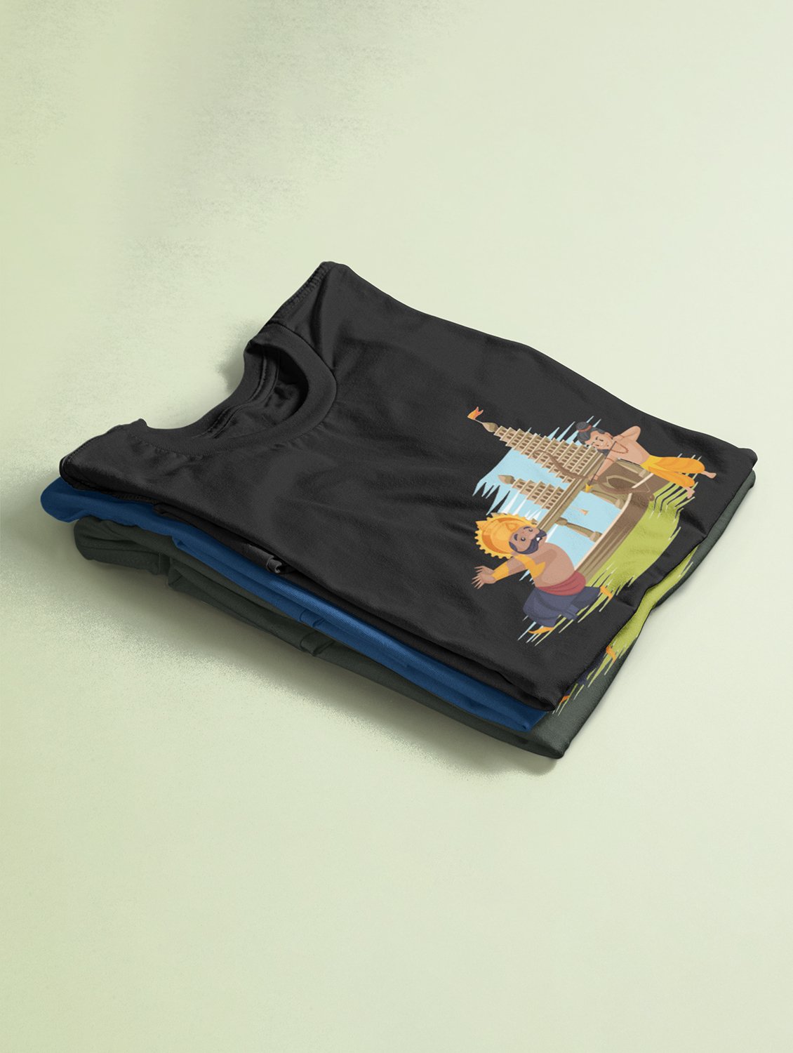 Lord Ram and ravan animated printed unisex adults round neck cotton half-sleeve black tshirt specially for Navratri festival/ Durga puja