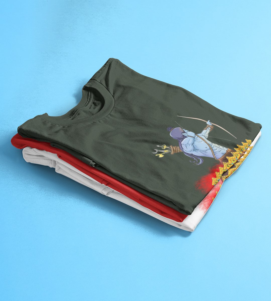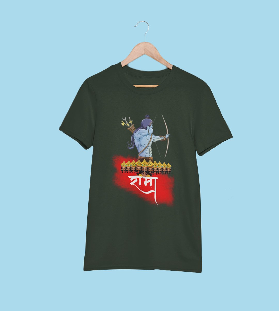 Lord Ram and Ravana face printed unisex adults round neck cotton half-sleeve green tshirt specially for Navratri festival/ Durga puja