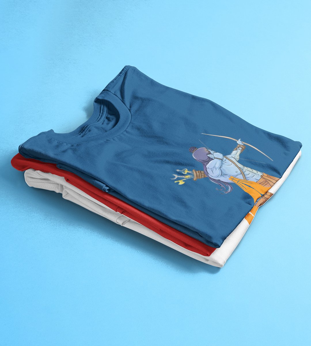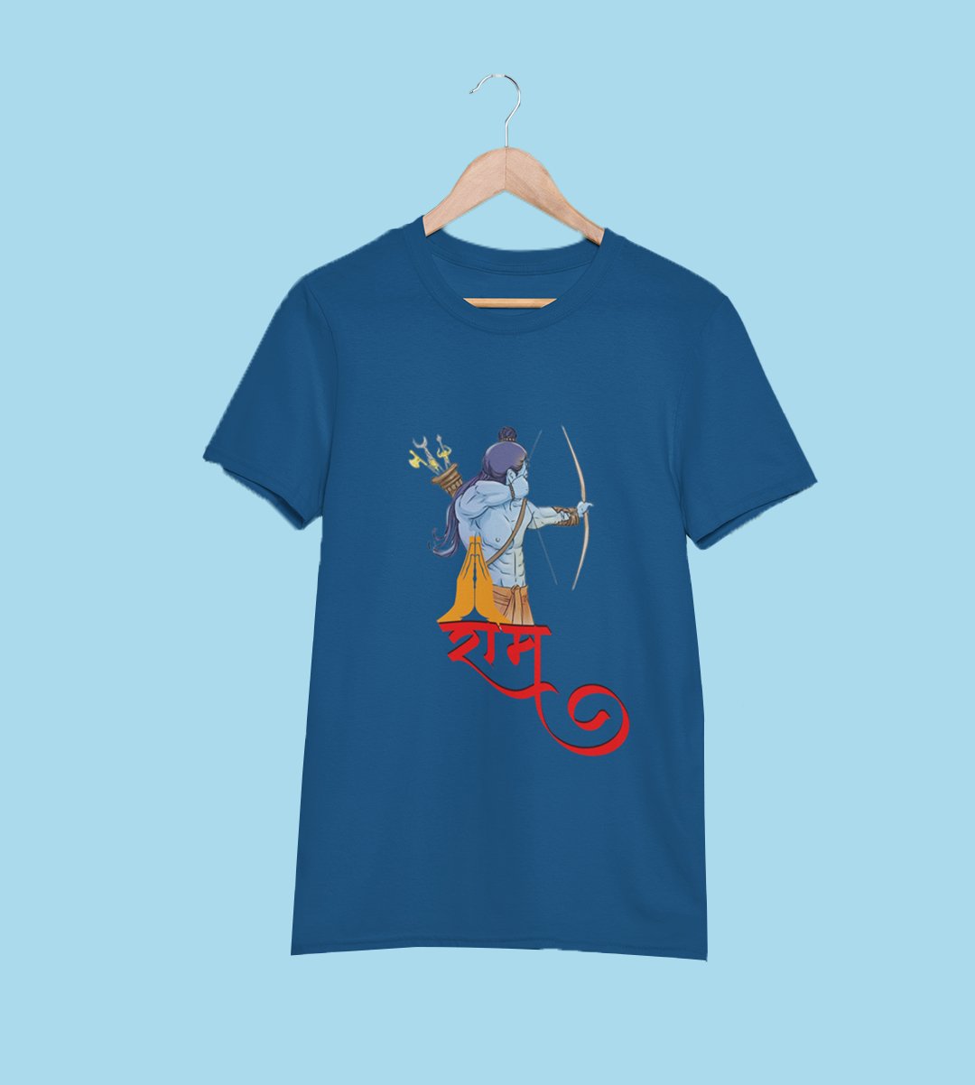 Lord Ram animated printed unisex adults round neck cotton half-sleeve blue tshirt specially for Navratri festival/ Durga puja