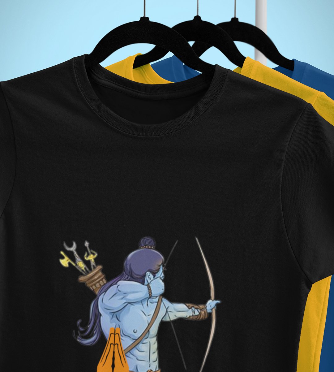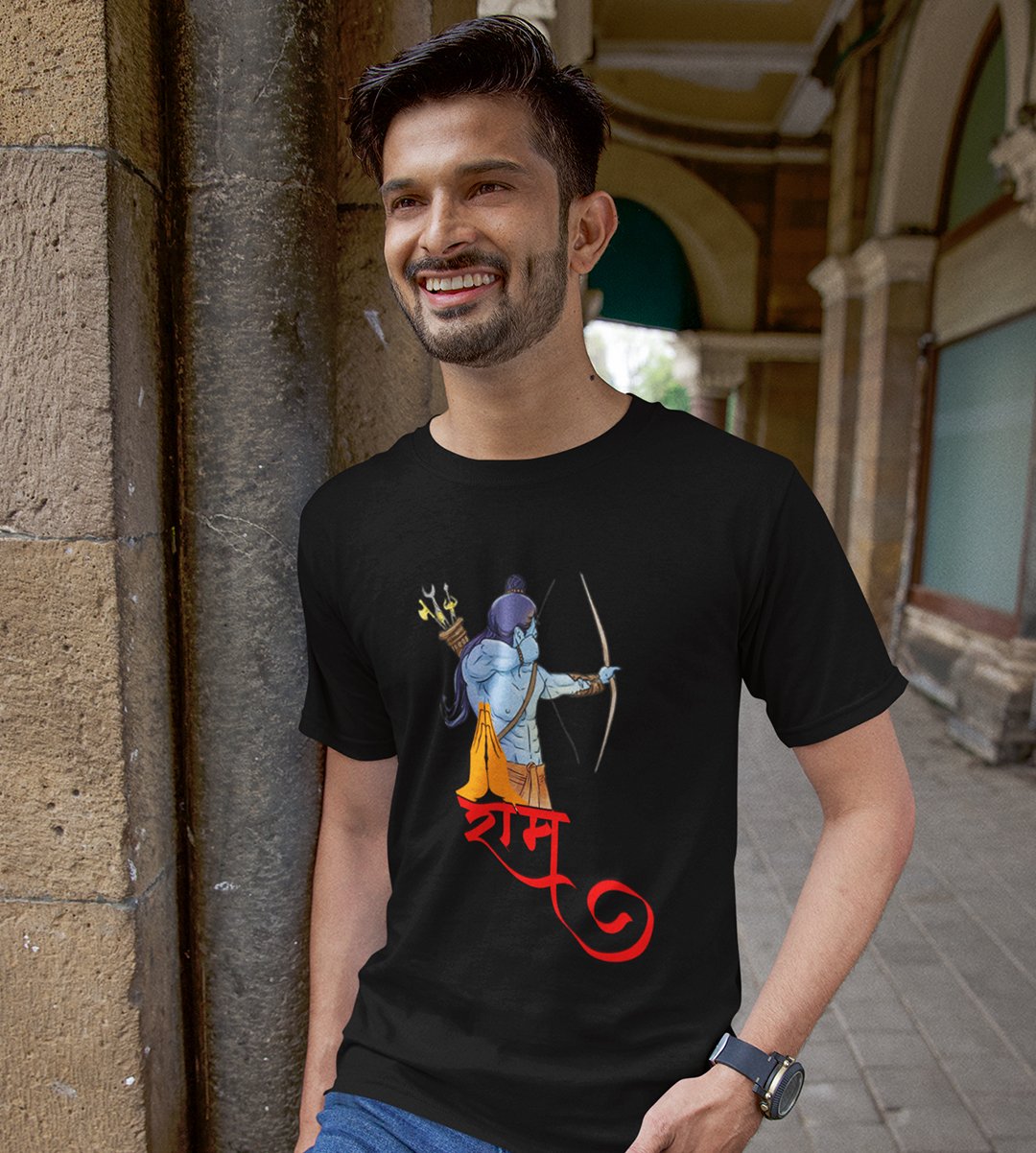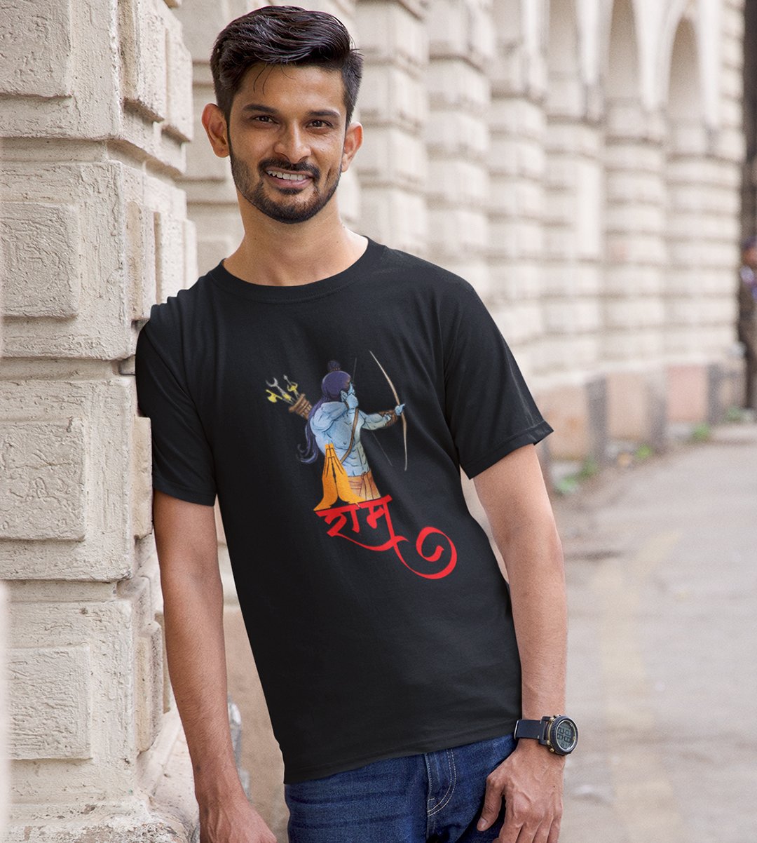 Lord Ram (Red text) printed unisex adults round neck cotton half-sleeve black tshirt specially for Navratri festival/ Durga puja