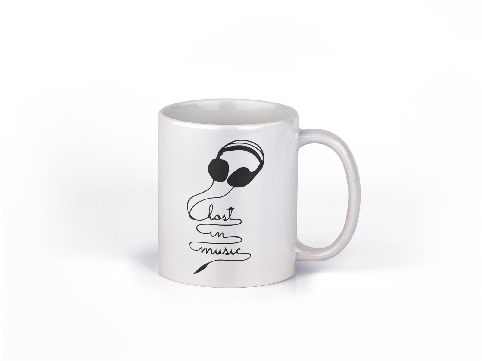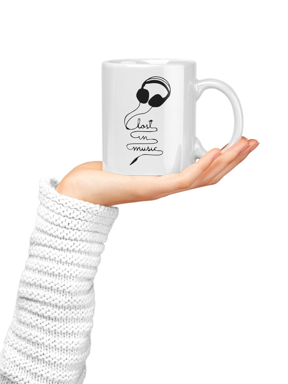 Lost In Music- music themed printed ceramic white coffee and tea mugs/ cups for music lovers
