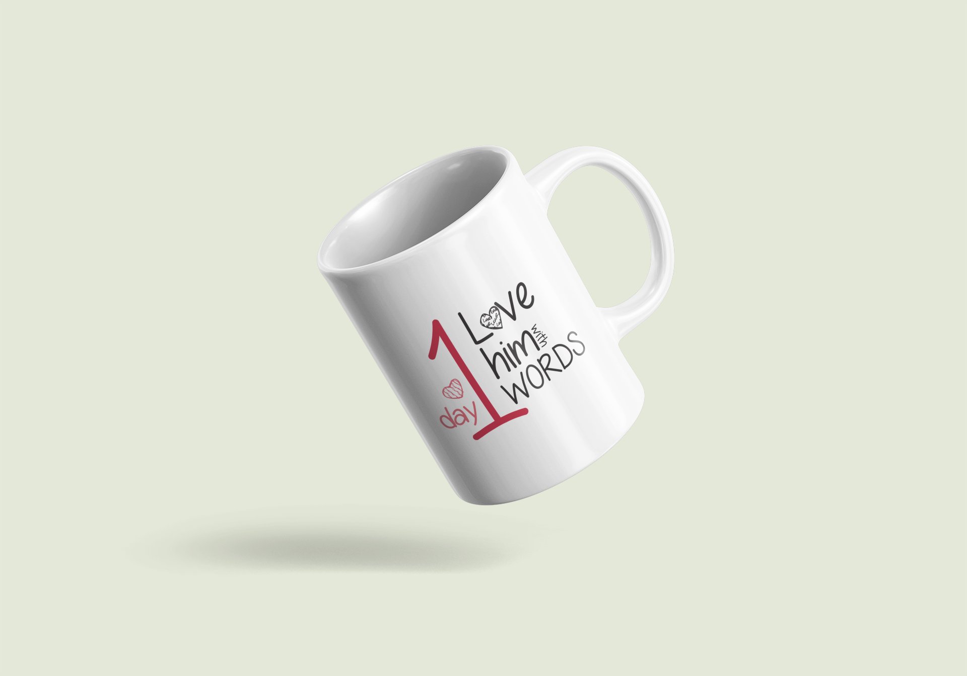 Love Him With Words - valentine themed printed ceramic white coffee and tea mugs/ cups
