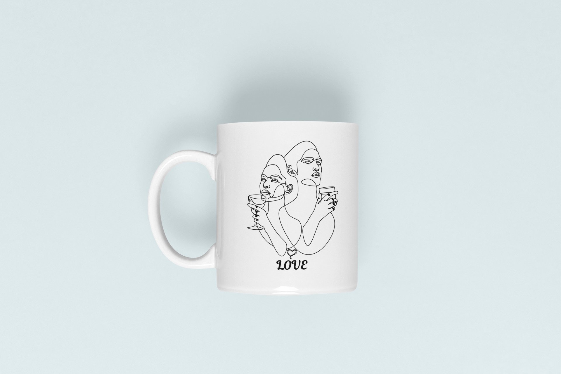 Love In Drink - line art themed printed ceramic white coffee and tea mugs/ cups