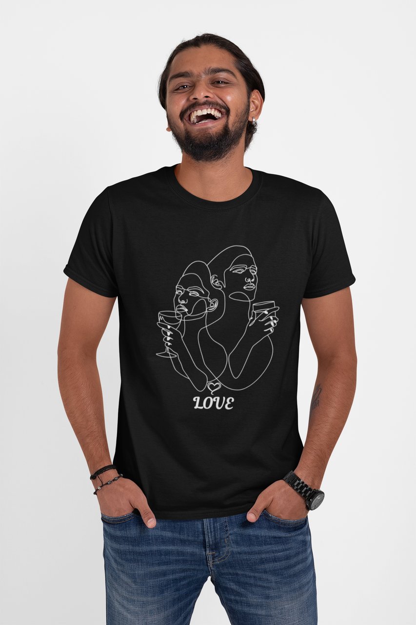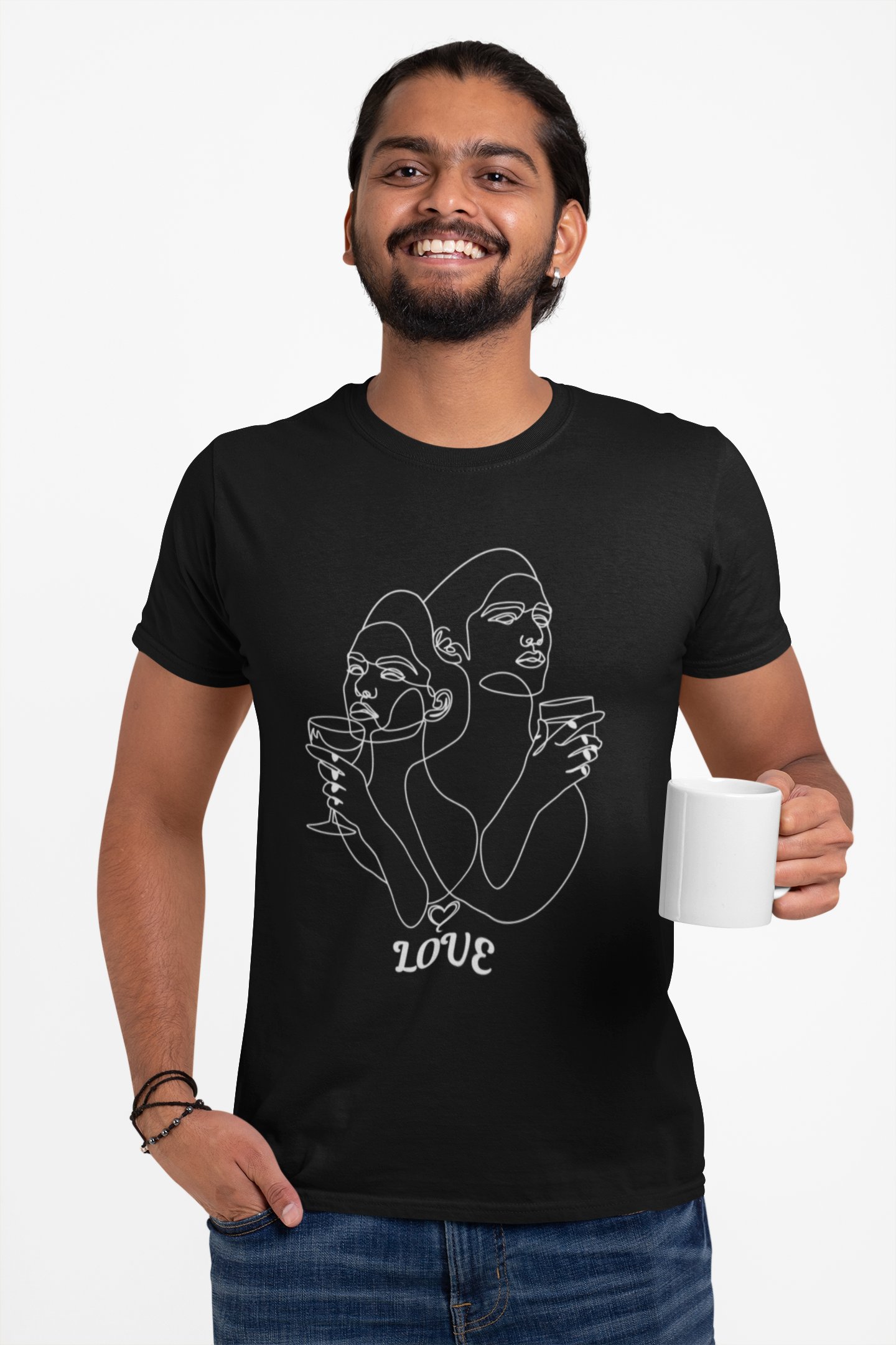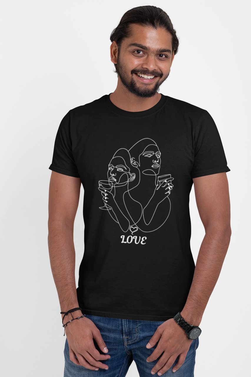 Love In Drink - Line Art for Male - Half Sleeves T-shirt
