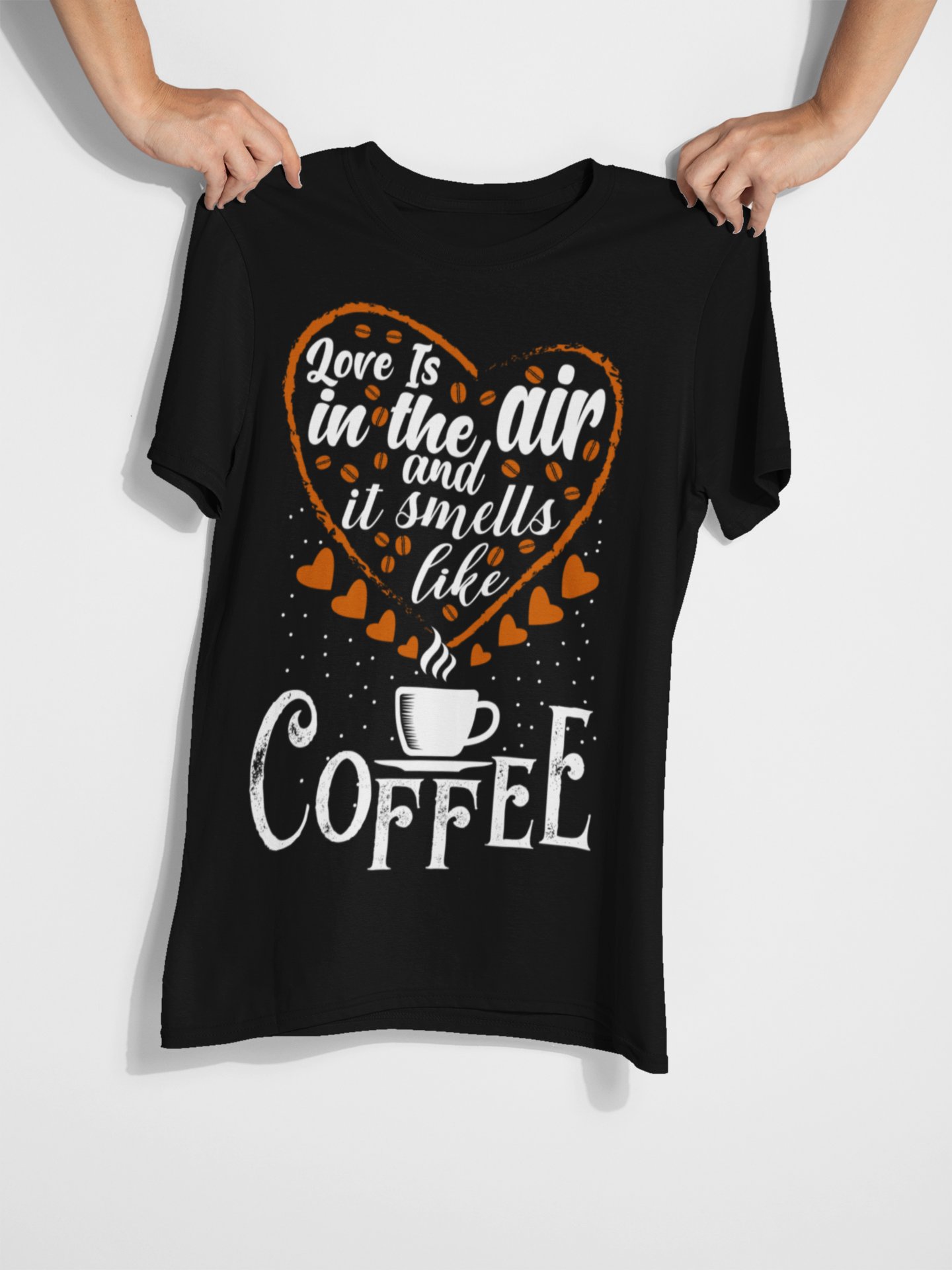 Love in the air and it smells like Coffee - Black - printed t shirt - comfortable round neck cotton.