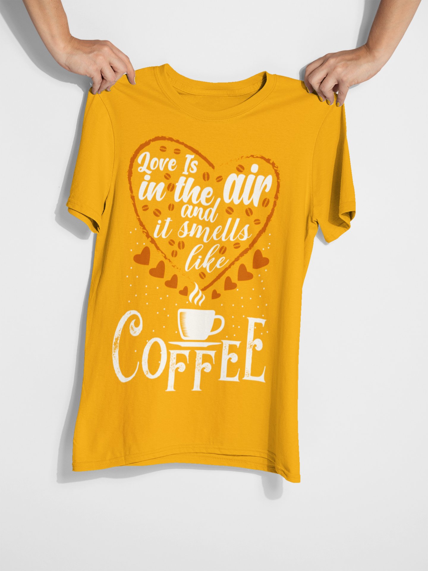 Love in the air and it smells like Coffee - Yellow - printed t shirt - comfortable round neck cotton.