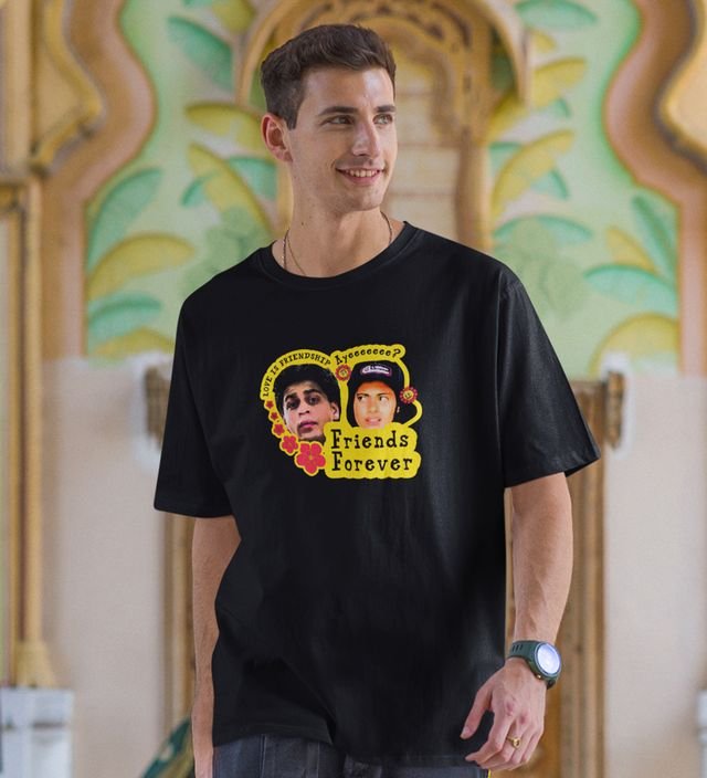 Love Is Friendship Black Round Neck Cotton Half Sleeved Men T-Shirt with Printed Graphics