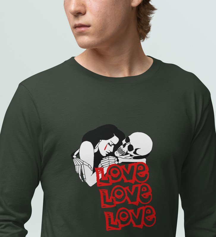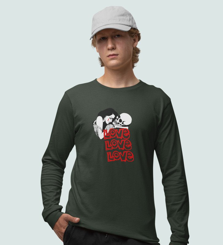 Love Is Insane : Printed (green) Full Sleeve T-Shirt For Singles