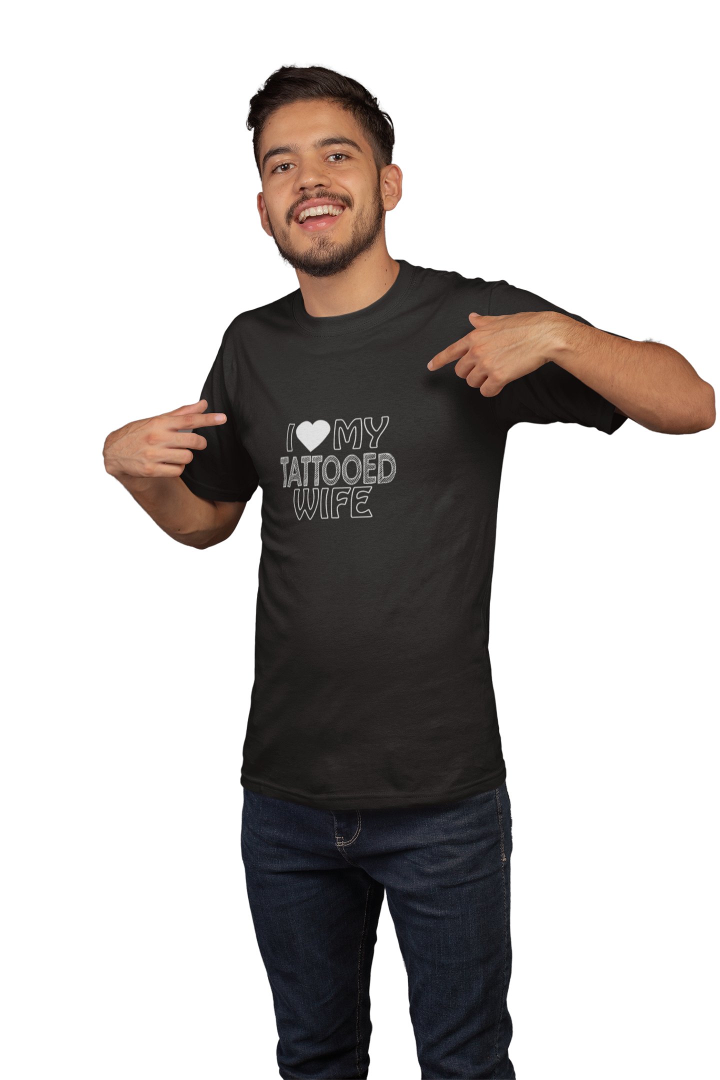 Love my tattoed wife(White Outline) -printed family themed cotton blended half-sleeve t-shirts made for men (black)
