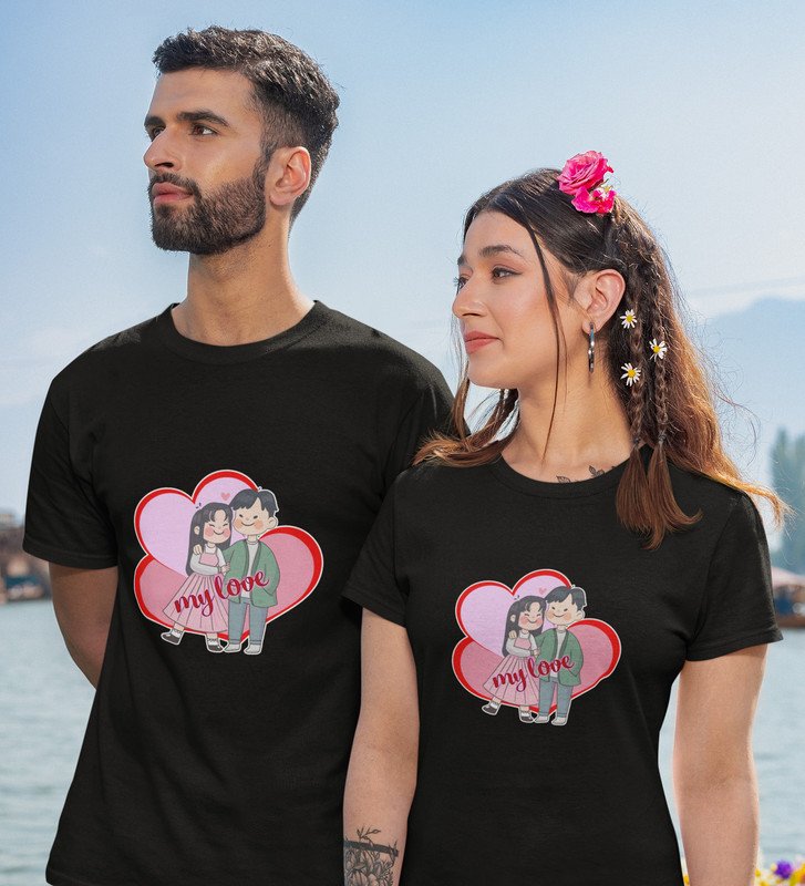Love Of My Life Couple Print (Black) T-shirts For Couples