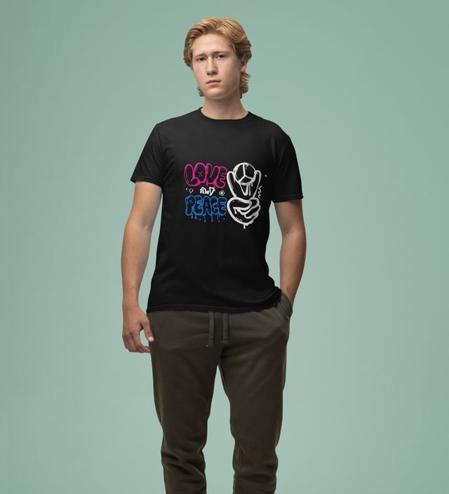 Love + Peace Vibe: Graphic Printed Black T-Shirt