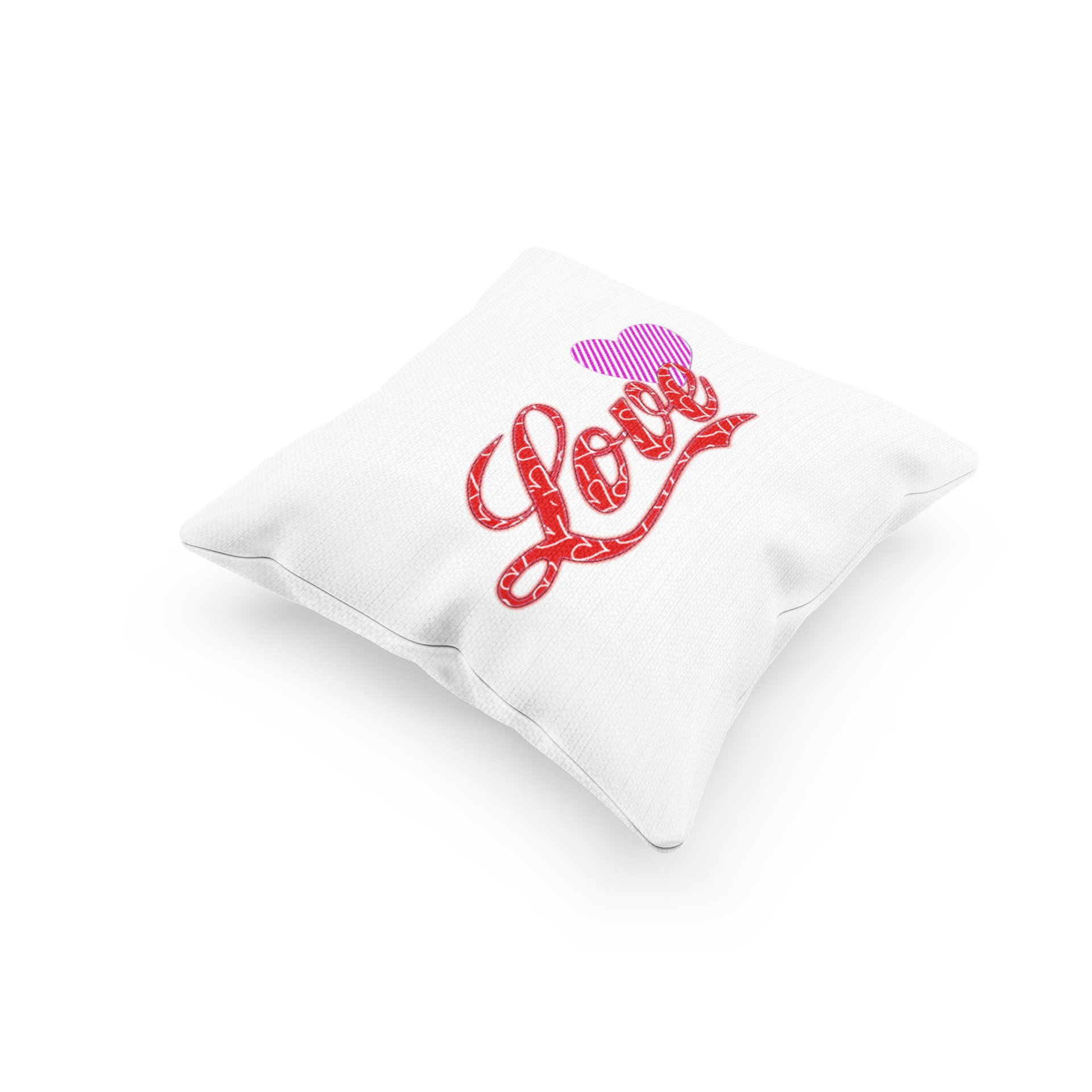 Love Text With Pink Heart -Printed Pillow Covers For (Pack Of Two)