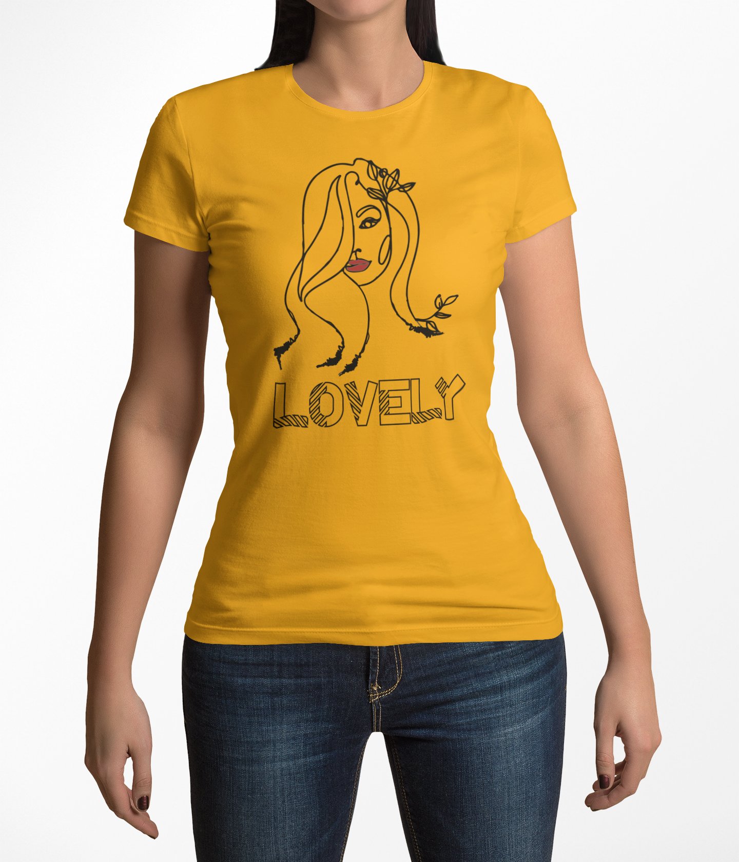 Lovely - Line Art for Female - Half Sleeves T-shirt