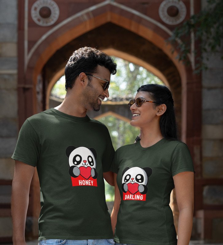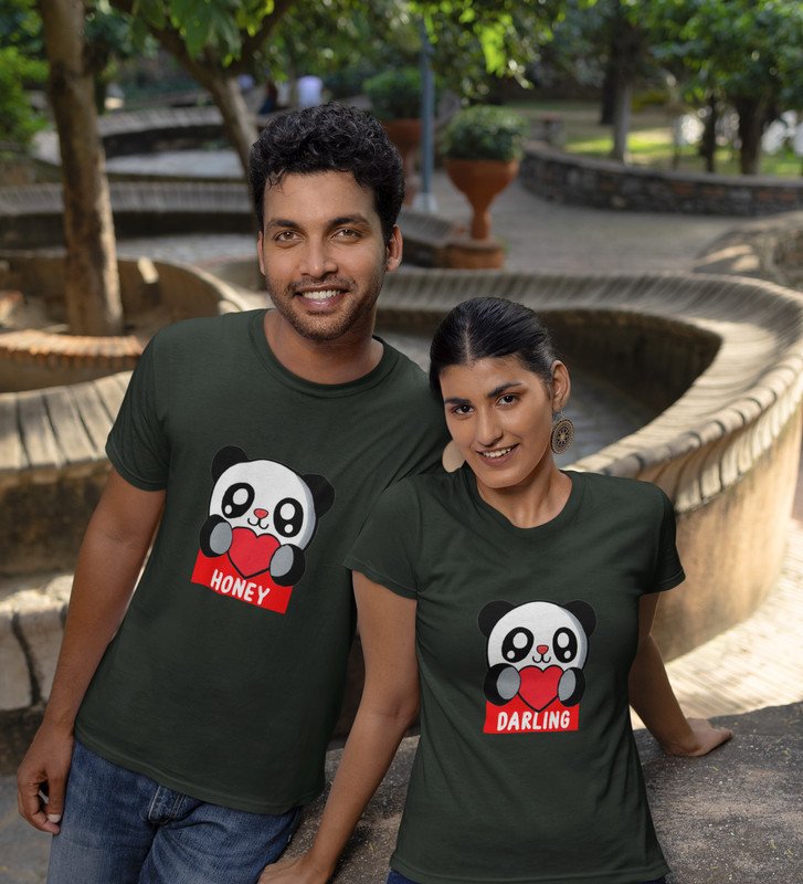 Lover Panda Couple Printed (green) T-shirts