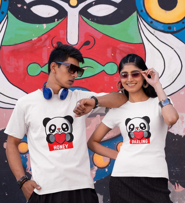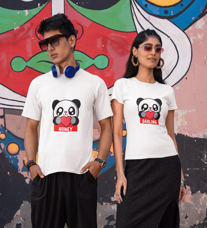 Lover Panda Couple Printed (White) T-shirts