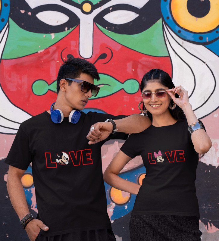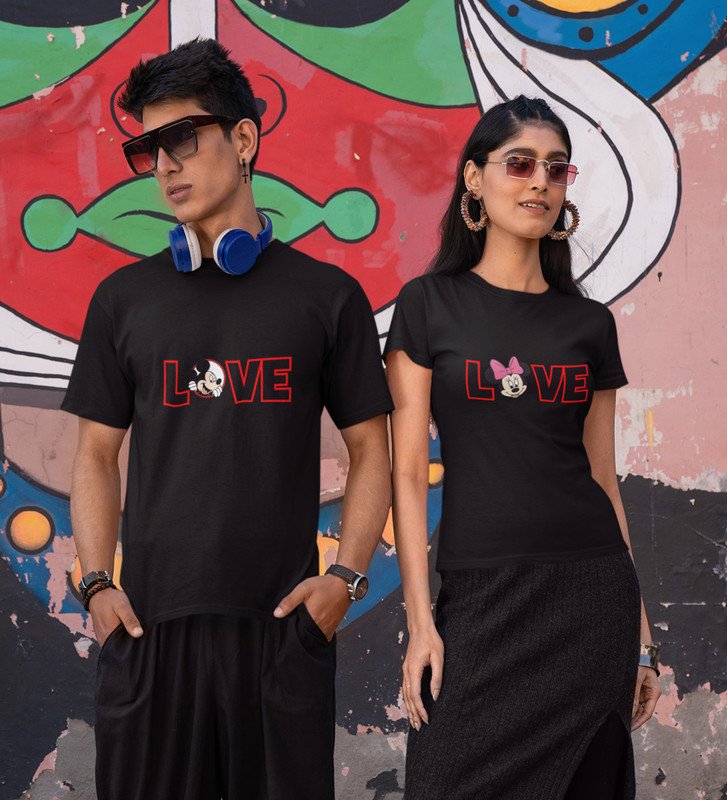 Lover's Point Printed (Black) T-shirts For Couple