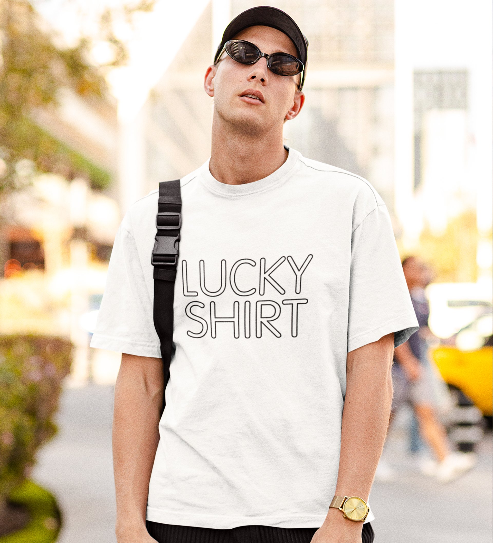 Lucky Shirt White Round Neck Cotton Half Sleeved Men's T-Shirt with Printed Graphics