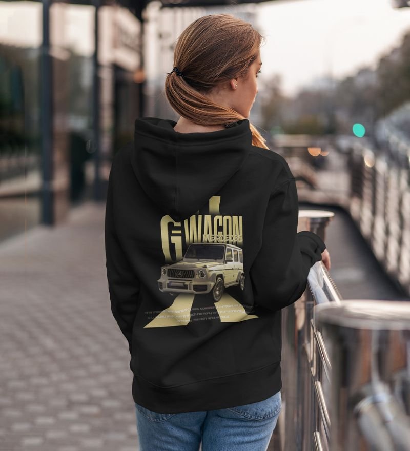 Luxury Meets Strength Iconic All-Terrain SUV Printed Black Hoodie for Women