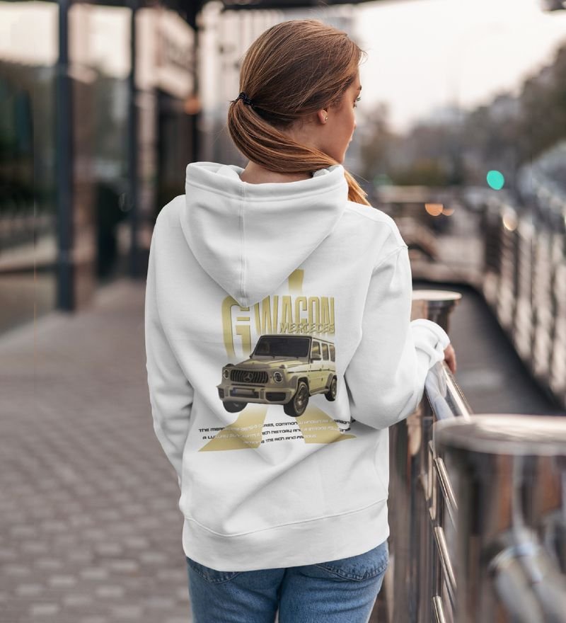 Luxury Meets Strength Iconic All-Terrain SUV Printed White Hoodie for Women