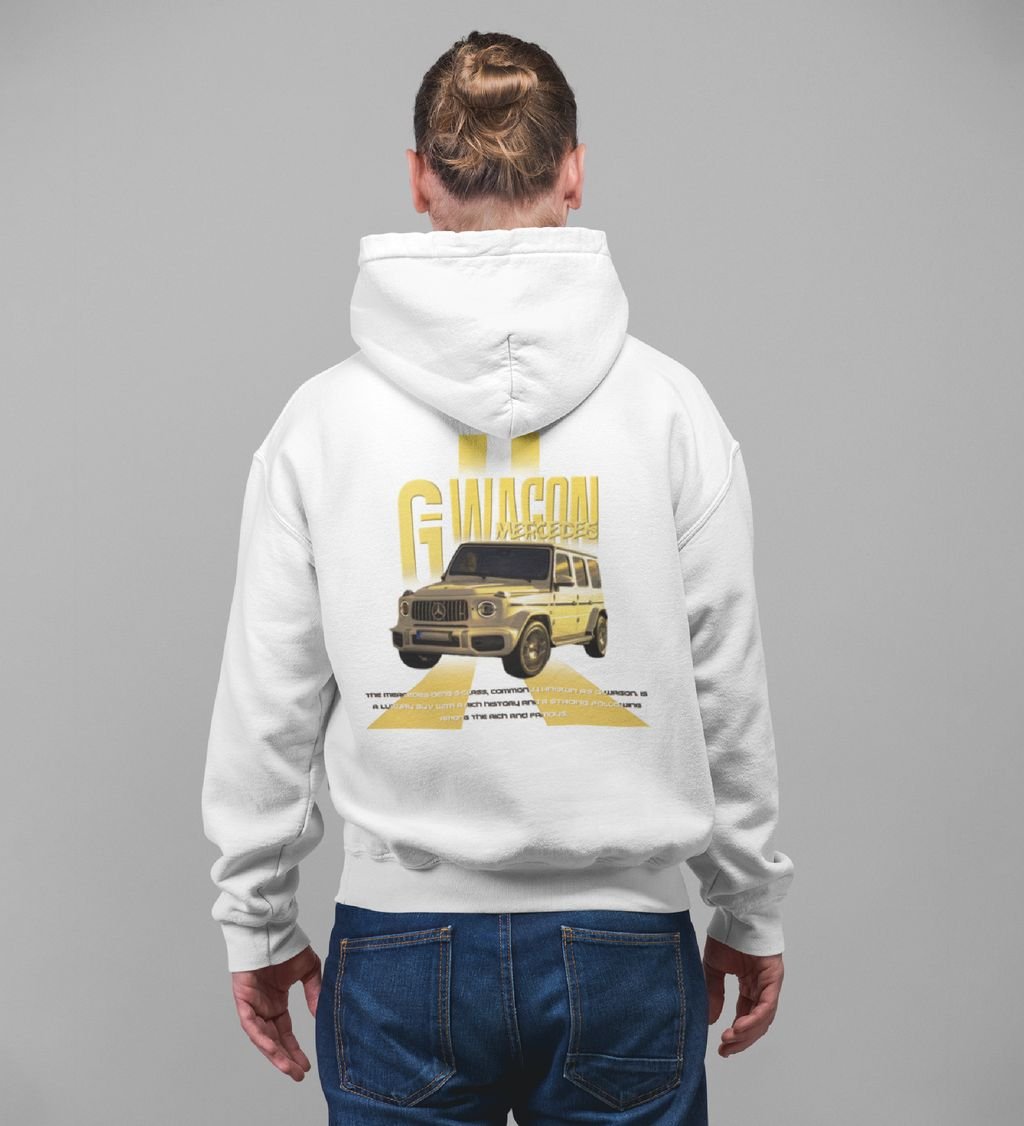 Luxury Meets Strength Iconic AllTerrain SUV Printed White Hoodie for Men