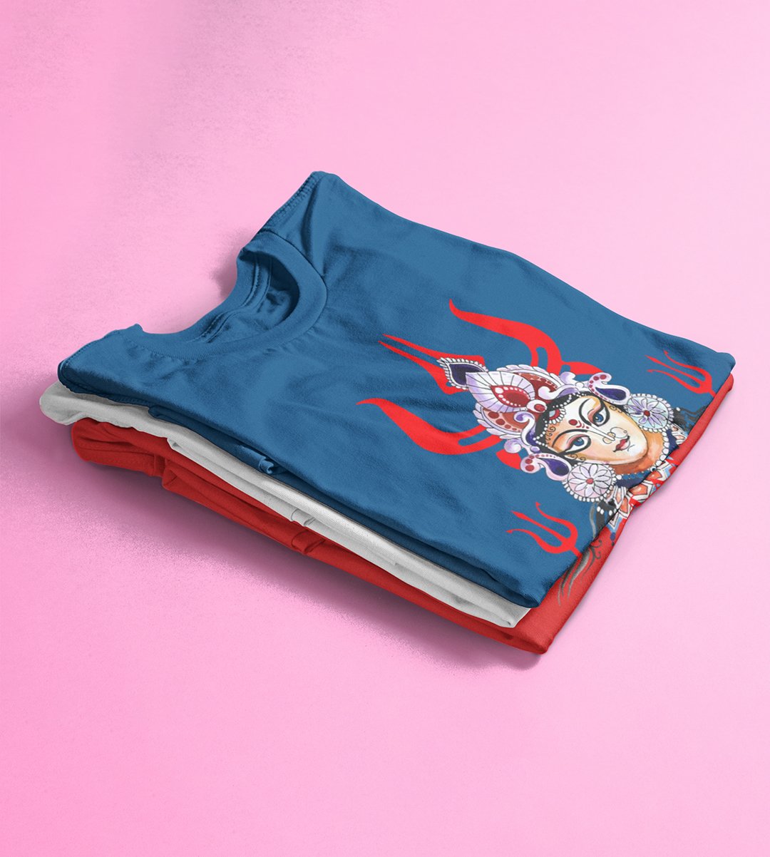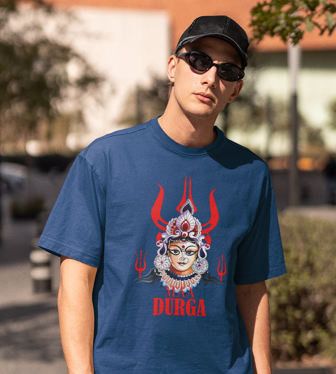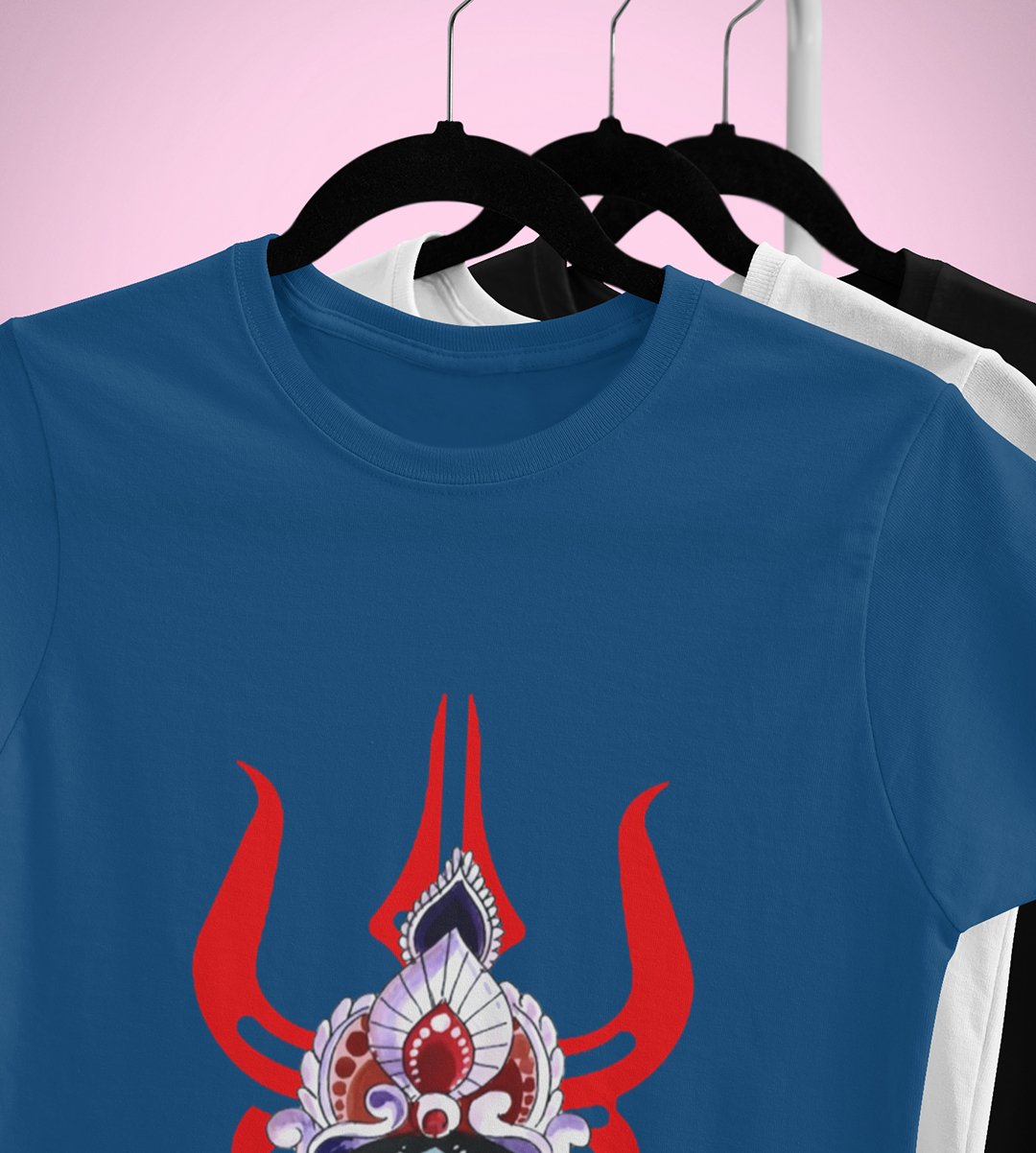 Maa durga (3 trishuls) printed unisex adults round neck cotton half-sleeve blue tshirt specially for Navratri festival/ Durga puja