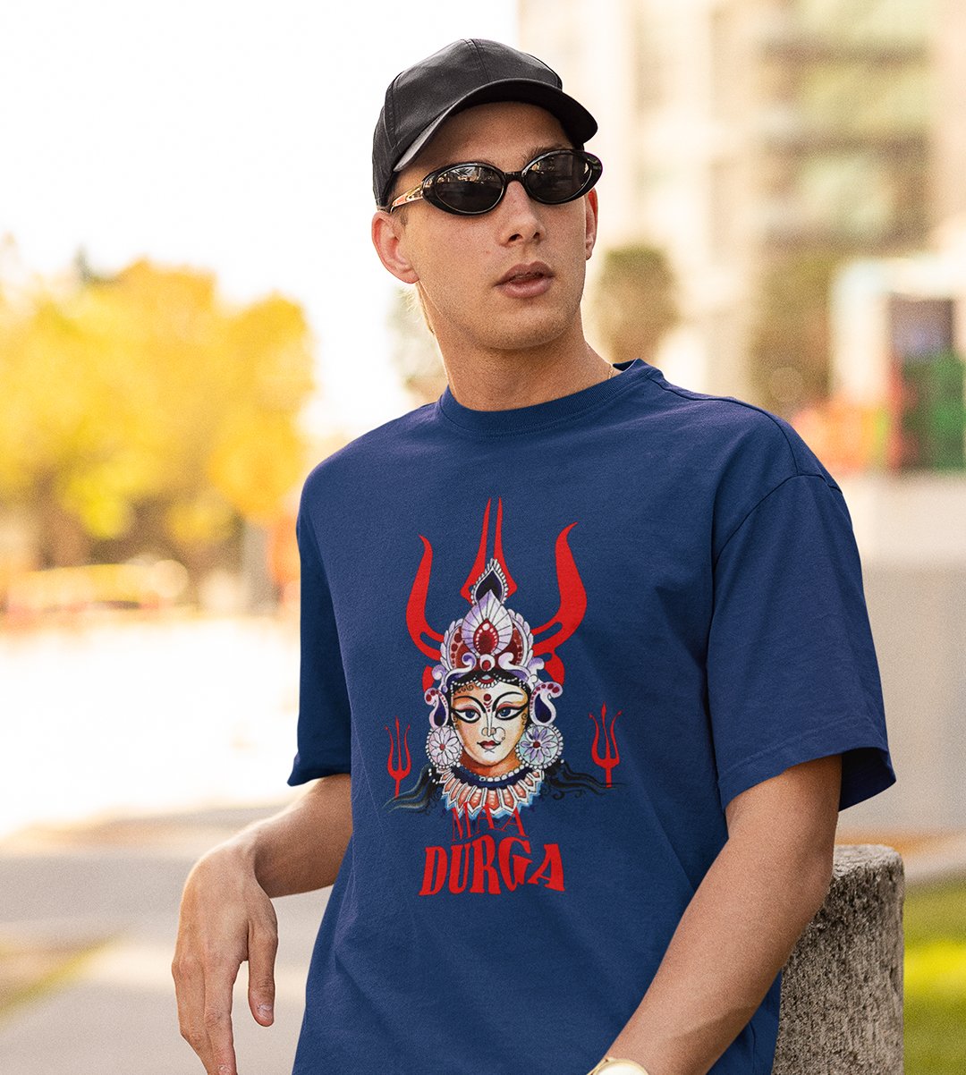 Navratri is a very auspicious festival for hindus. It takes place at the beginning of October and sometimes September. Enjoy the 9 days of festivities with full zeal and make yourself submerged in the love of Maa Durga. Navratri is also known as Durga Puja. And with this Tees, you can shine like a star during this festive season with our navratri themed cotton half sleeved Tshirts. You can pair our t-shirts with trousers and denim of your choice and make it a weekday smart casual or weekend wear. This is durable. This tshirt is smooth and soft which makes you comfortable to wear during all seasons. The printing in it is durable and odourless. It has five sizes, S,M,L,XL,XXL. The Tshirt colour is intact even after repeated washes. It can be kept in your wardrobe and hangers. Please avoid washing mashine to clean this Tee, it may affect the print. Hand wash only. We have brought you many navratri related designs printed on our different colour Tshirts to choose from. Grab it now.