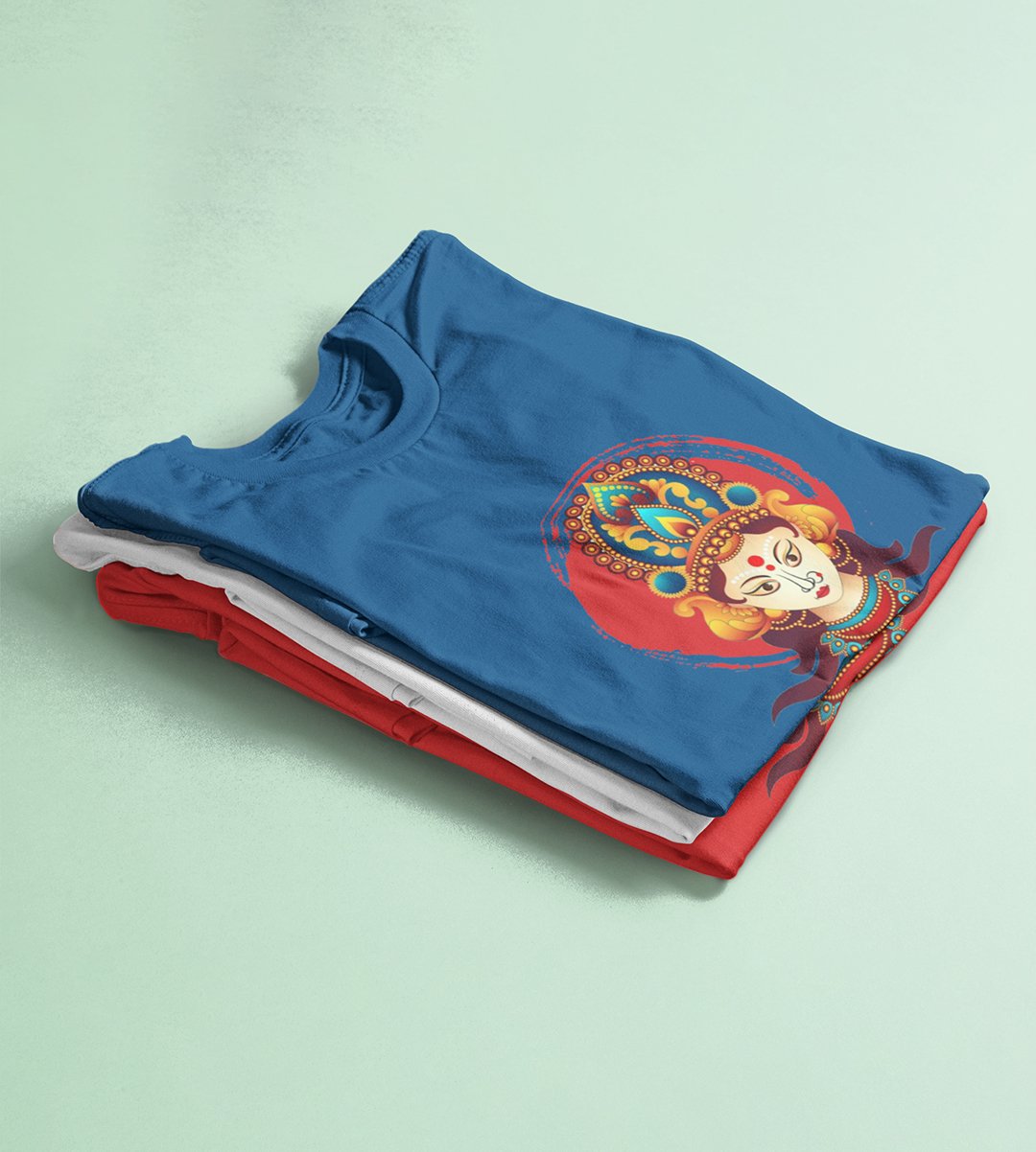 Navratri is a very auspicious festival for hindus. It takes place at the beginning of October and sometimes September. Enjoy the 9 days of festivities with full zeal and make yourself submerged in the love of Maa Durga. Navratri is also known as Durga Puja. And with this Tees, you can shine like a star during this festive season with our navratri themed cotton half sleeved Tshirts. You can pair our t-shirts with trousers and denim of your choice and make it a weekday smart casual or weekend wear. This is durable. This tshirt is smooth and soft which makes you comfortable to wear during all seasons. The printing in it is durable and odourless. It has five sizes, S,M,L,XL,XXL. The Tshirt colour is intact even after repeated washes. It can be kept in your wardrobe and hangers. Please avoid washing mashine to clean this Tee, it may affect the print. Hand wash only. We have brought you many navratri related designs printed on our different colour Tshirts to choose from. Grab it now.