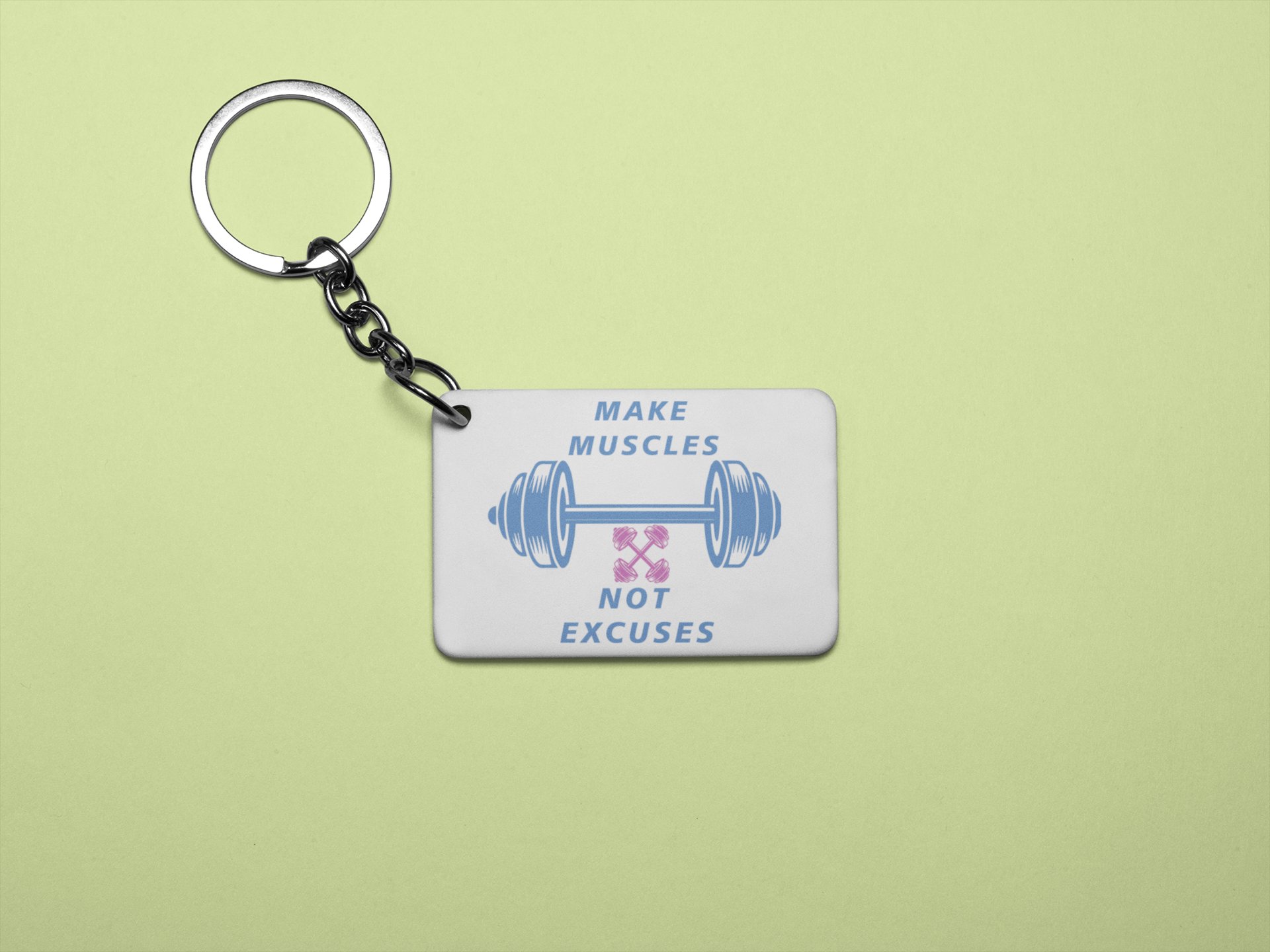Make Muscles, Not Excuses, (BG White) - Printed Keychains for gym lovers(Pack of 2)