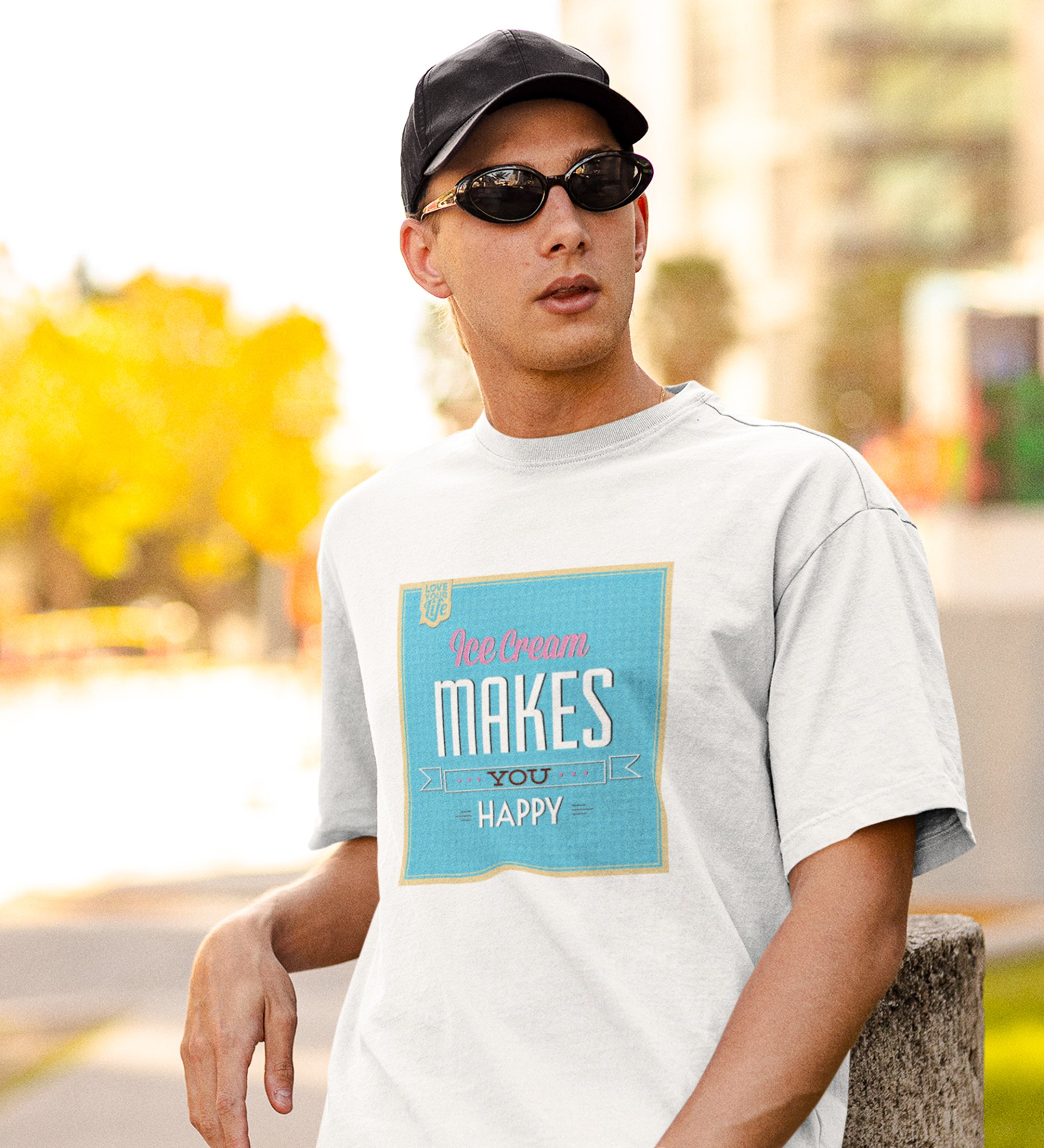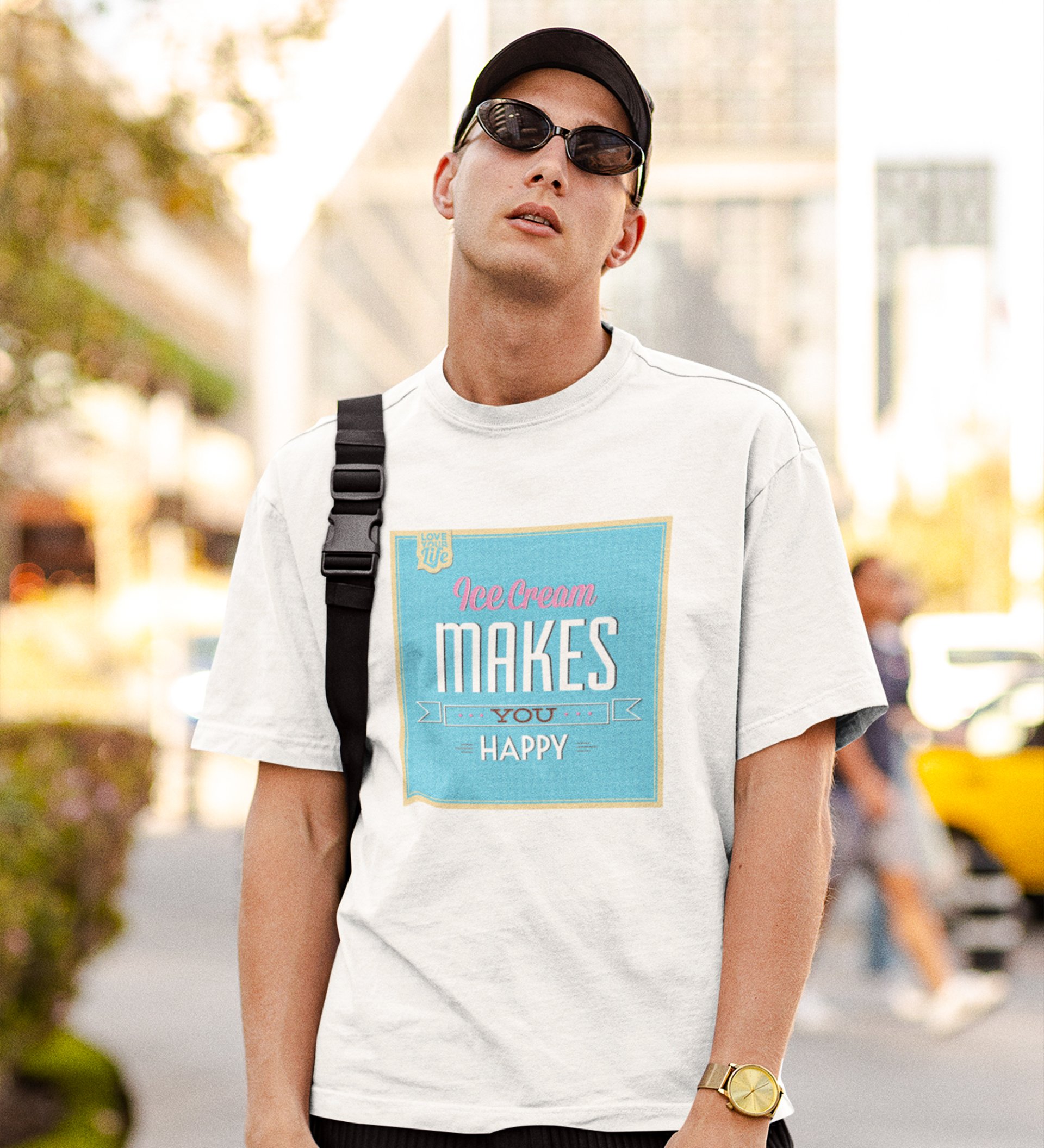 Ice- Cream White Round Neck Cotton Half Sleeved Men's T-Shirt with Printed Graphics