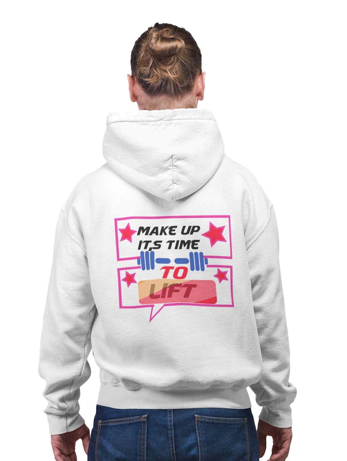 Makeup, Its Time To Lift printed artswear white hoodies for winter casual wear specially for Men