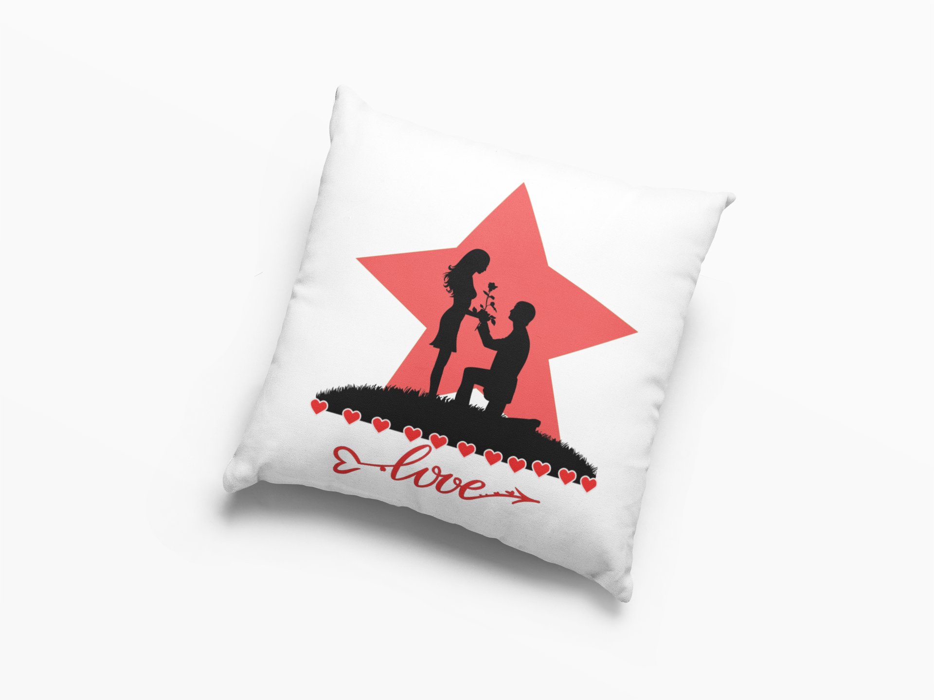 Man Proposing Women With Rose -Printed Pillow Covers For (Pack Of Two)