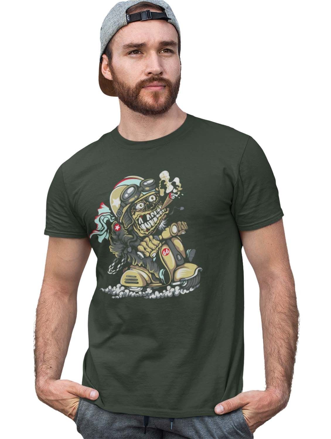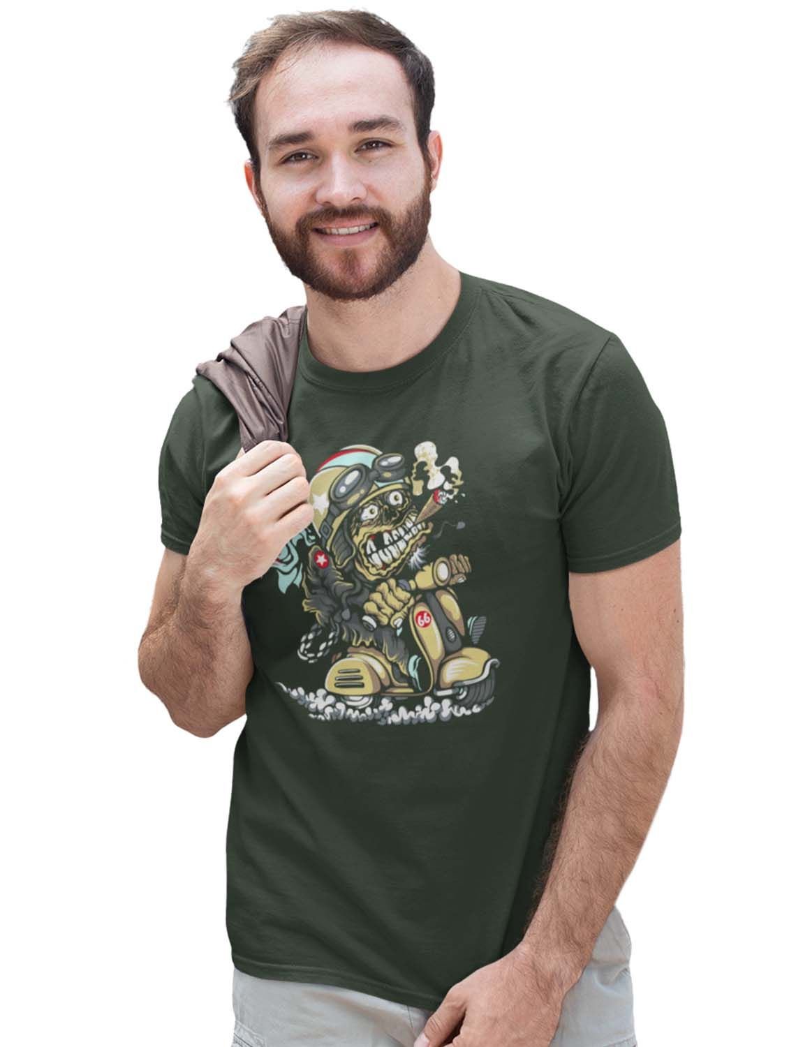 Demon- The Rider Graphic Printed Green Cotton Round Neck Half Sleeves Tshirt