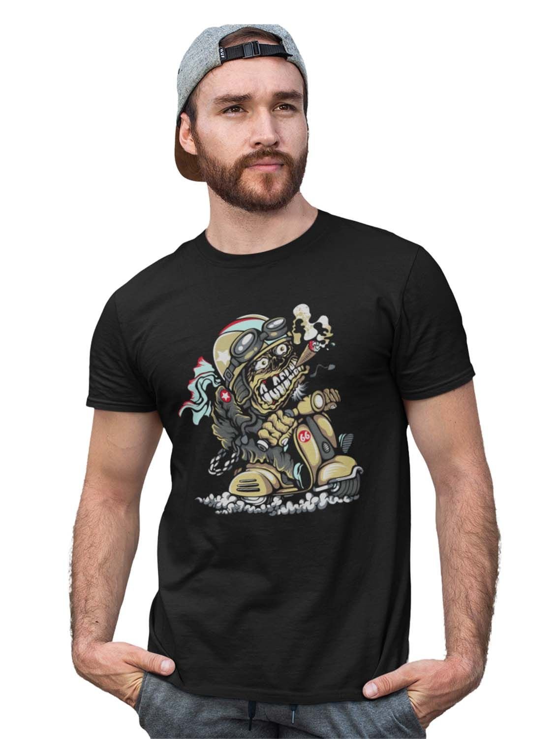 Demon- The Rider Graphic Printed Black Cotton Round Neck Half Sleeves Tshirt