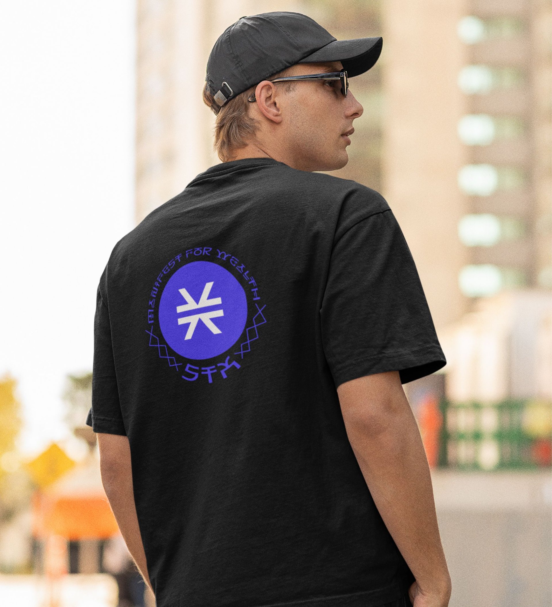 Manifest For Wealth Wings Black Round Neck Cotton Half Sleeved Men's T Shirt with Printed Graphics