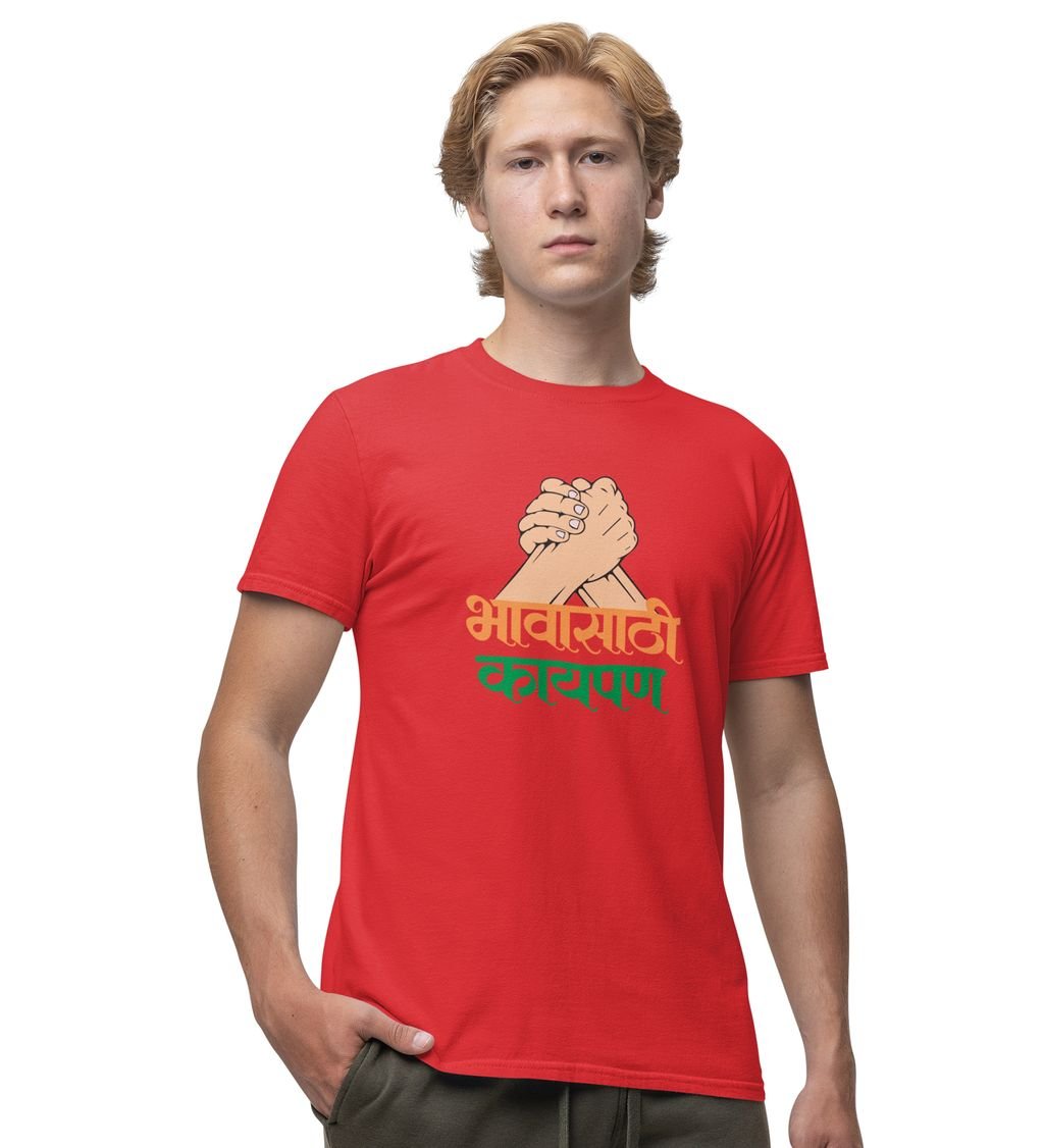 Maratha Bros Red Round Neck Cotton Half Sleeved Mens T Shirt with Printed Graphics